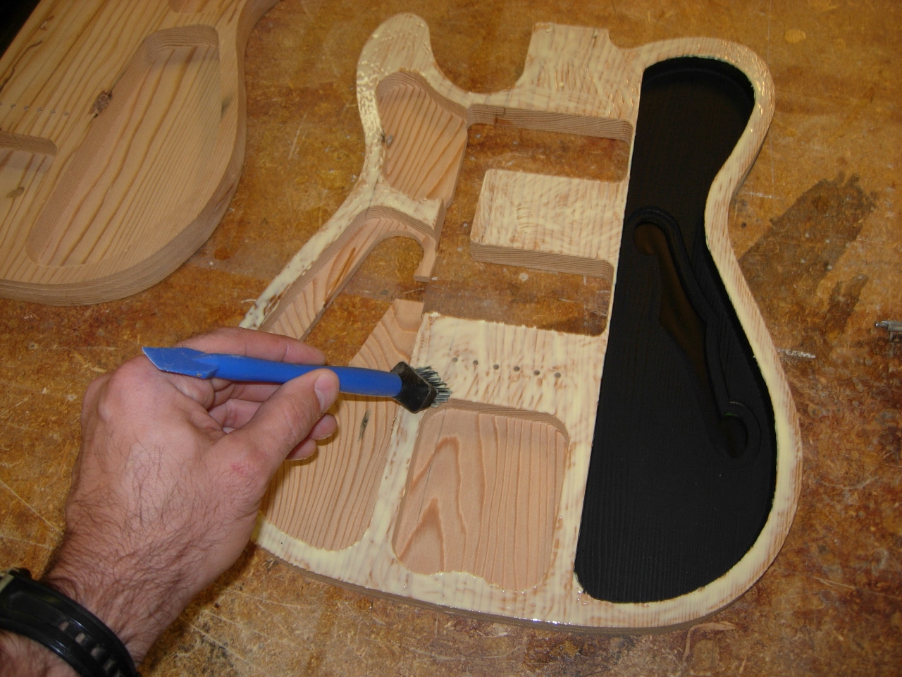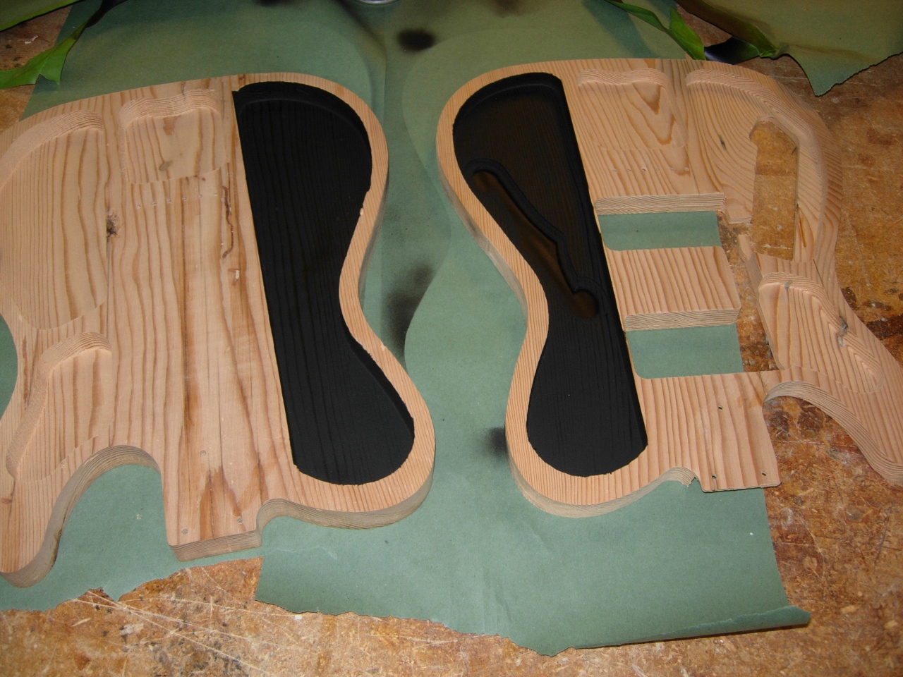 Spent the day packing my oldest up and taking him back to college. I did squeeze in a bit of time to get back to the guitar body, that I carved last week. I showed the guitar body to the client and he was happy with it, so my next step is to paint inside the cavity behind the f hole (sound hole).