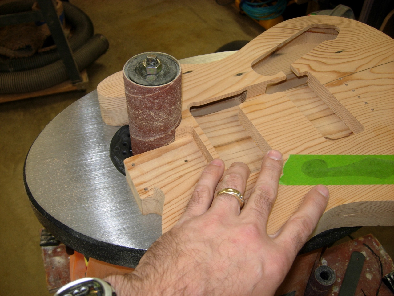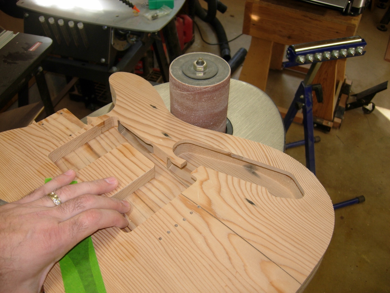 I ran the cutter around the front and back. I left the edges around the neck pocket sharp because they will set against the neck.