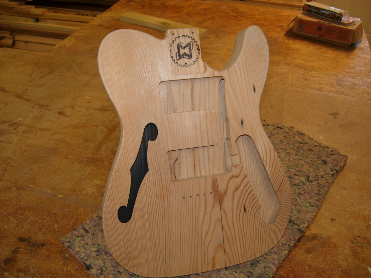 The client was impressed by the light weight. He thinks it will have a really good tone. I will try to get a few pictures of the completed guitar, when it is assembled. He is also talking about wanting a Stratocaster made from the same material. I have one piece of hemlock left. It has a few more cracks and a large knot, but it should work nicely. We will have to wait and see how this one sounds.