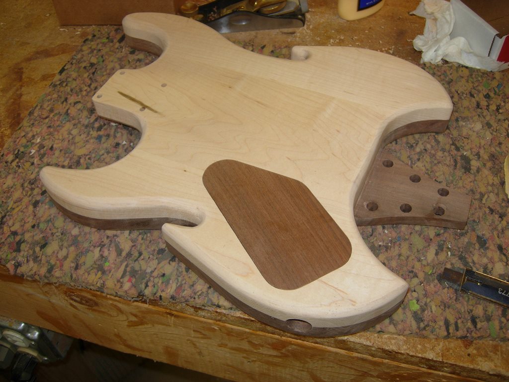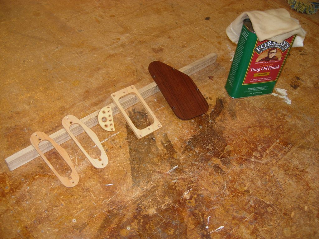 Everything was sanded down to 220 grit, then cleaned with Naphtha. I am using a low-gloss Tung oil for the finish on this guitar. I am hoping it will give the guitar a flatter, satin look.