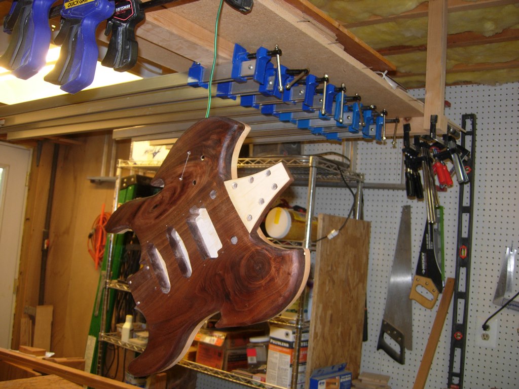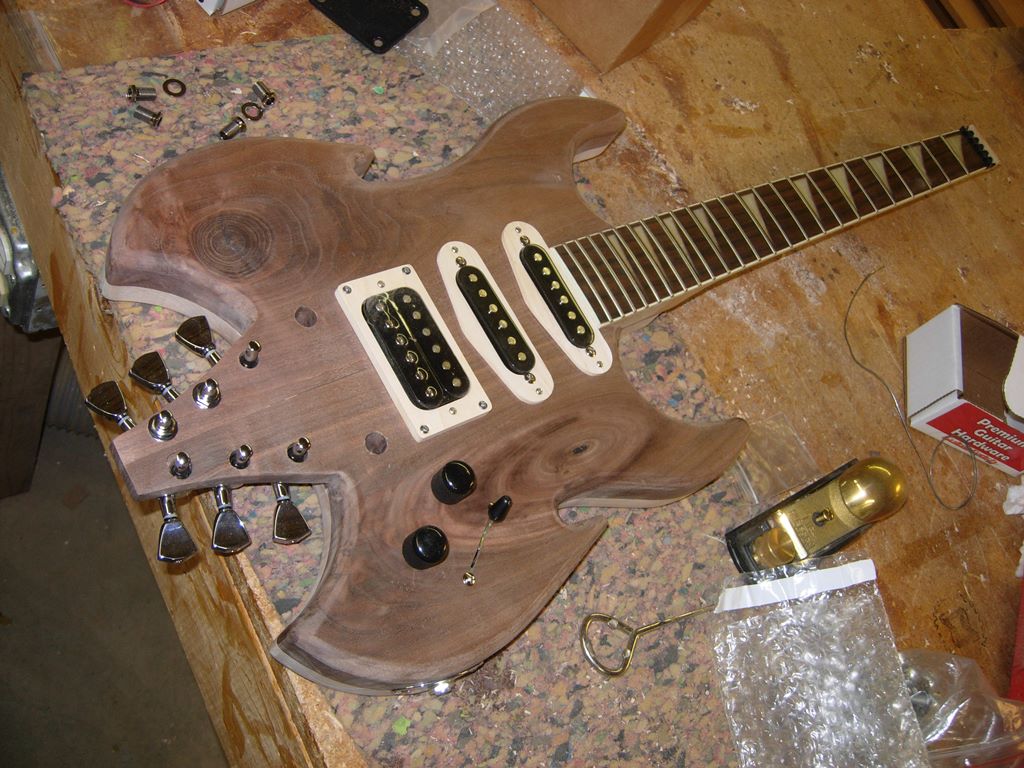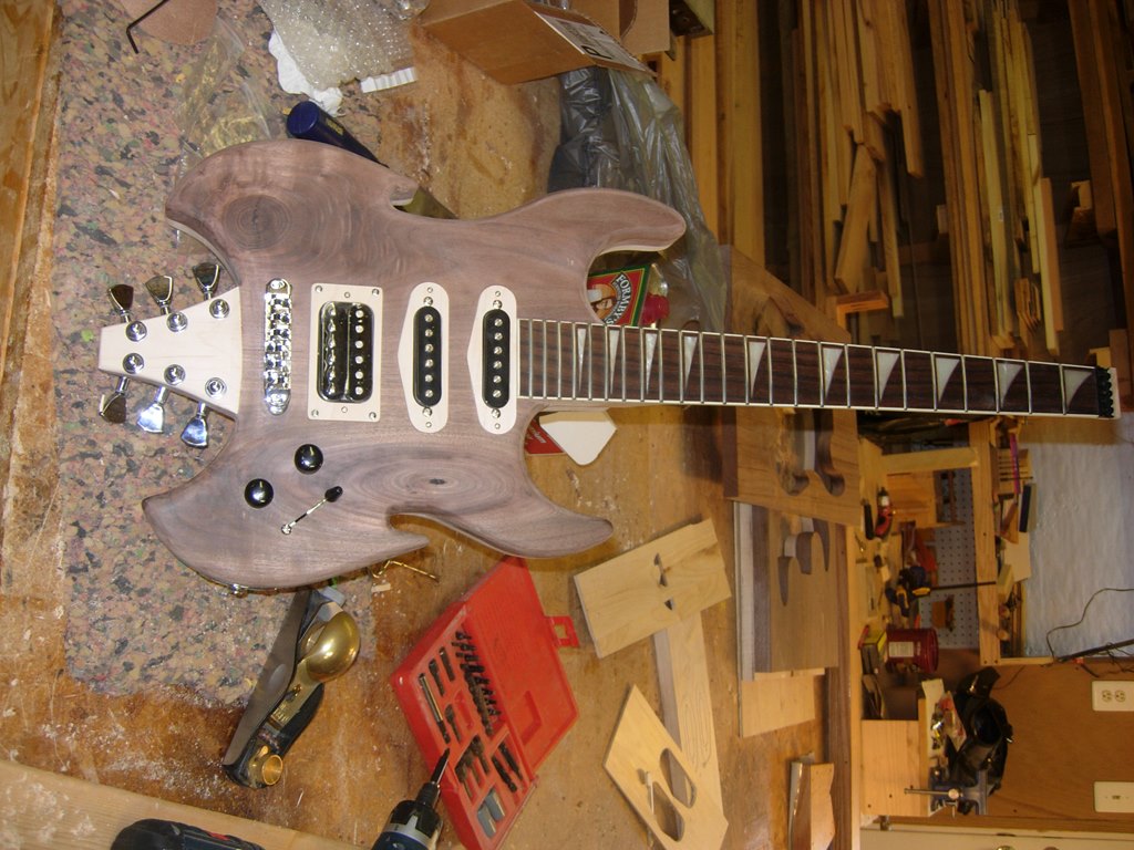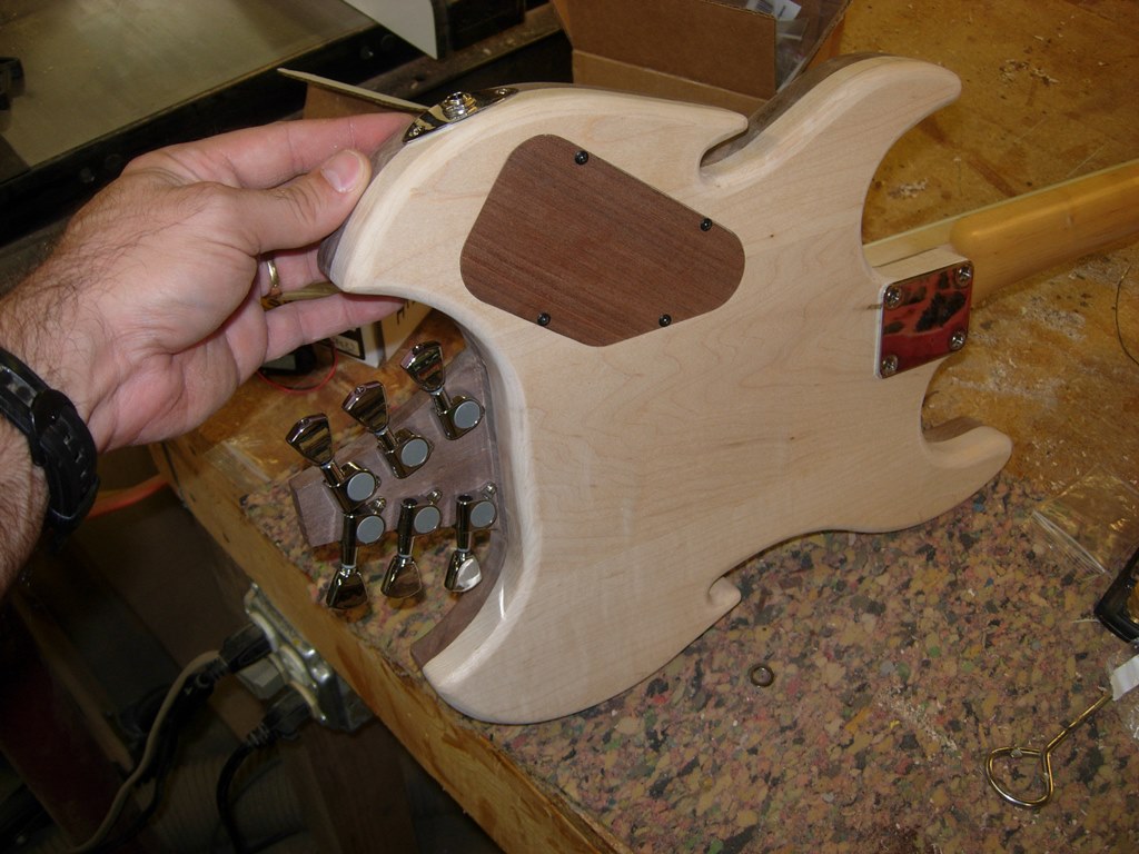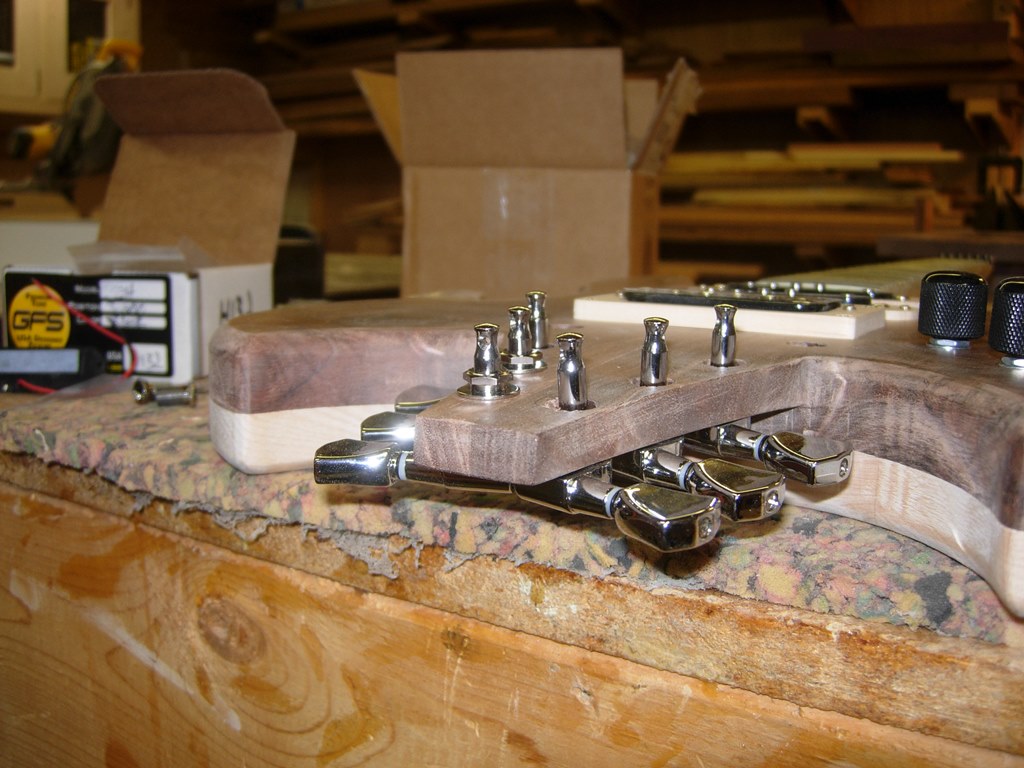 It looks good, and everything went smoothly until I got to the tuners. I made the tuning tail 1/2″ thick. It should have been closer to 5/8″. My tuners wouldn’t tighten down because the nuts bottomed out before hitting the wood.