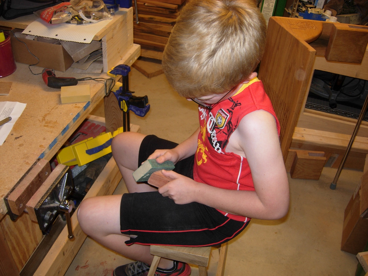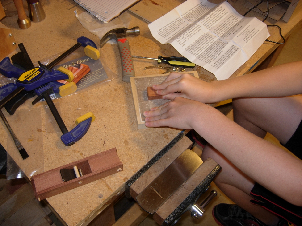 Perfect shavings! Adam’s plane is complete and just the right size for his small hands.