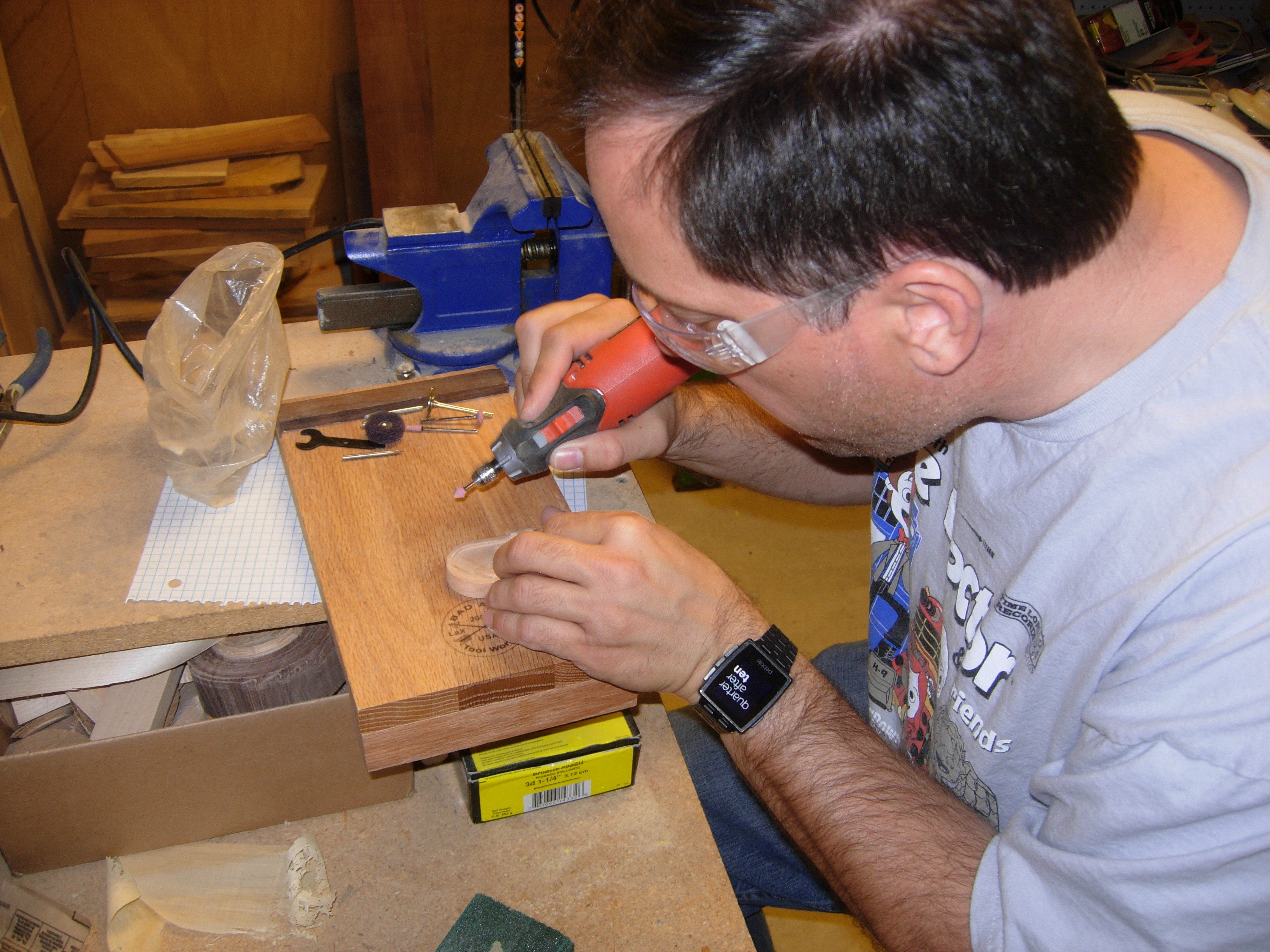 We fired up the carver, and half an hour later, we had the lid to the ring box.