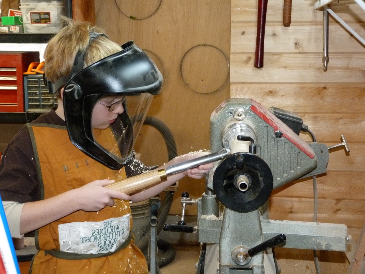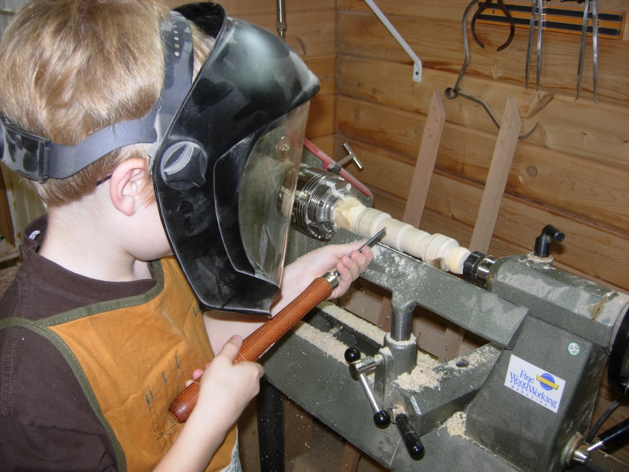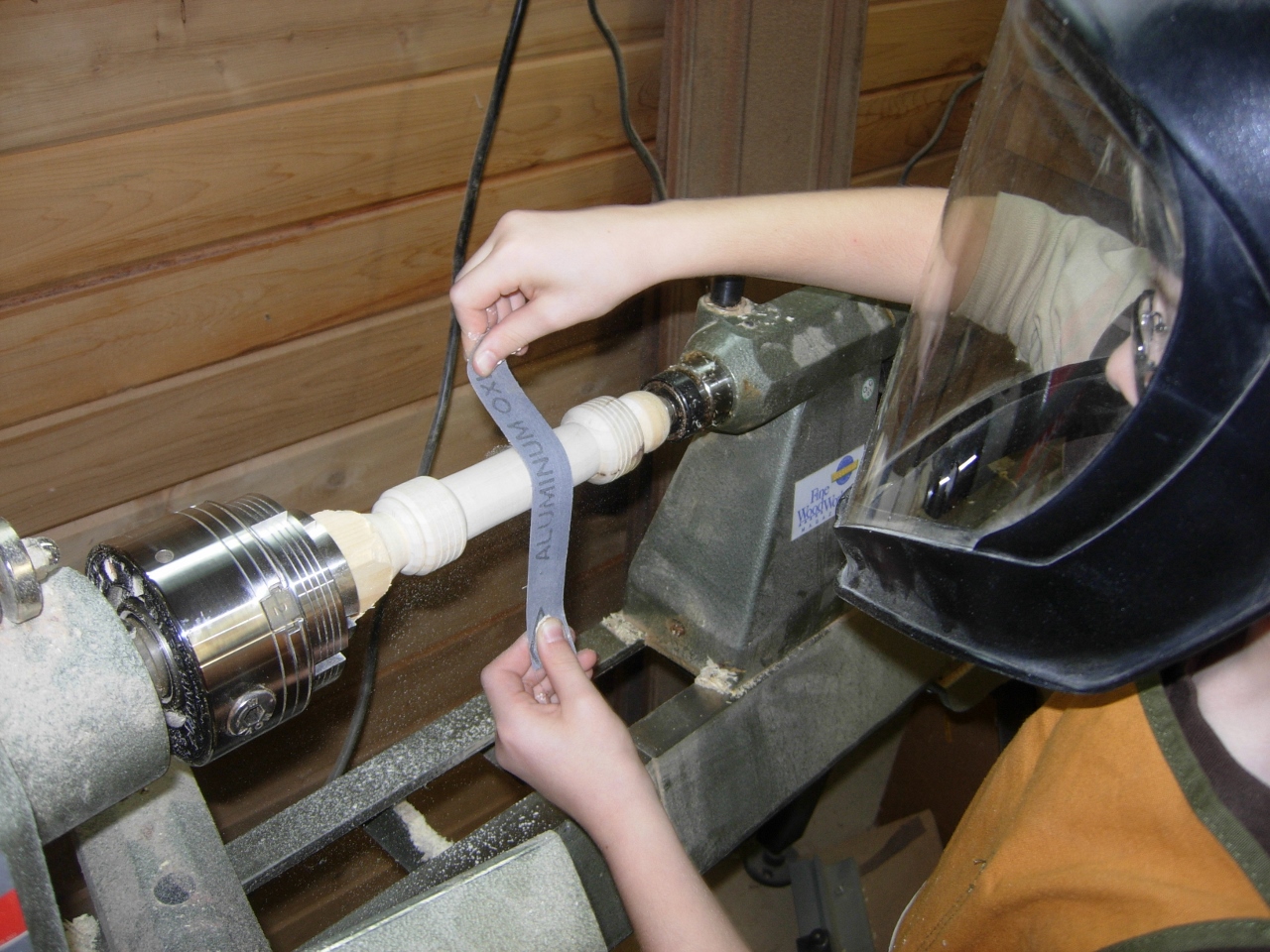 I showed him how to burnish the wood using the chips from roughing out the blanks.
