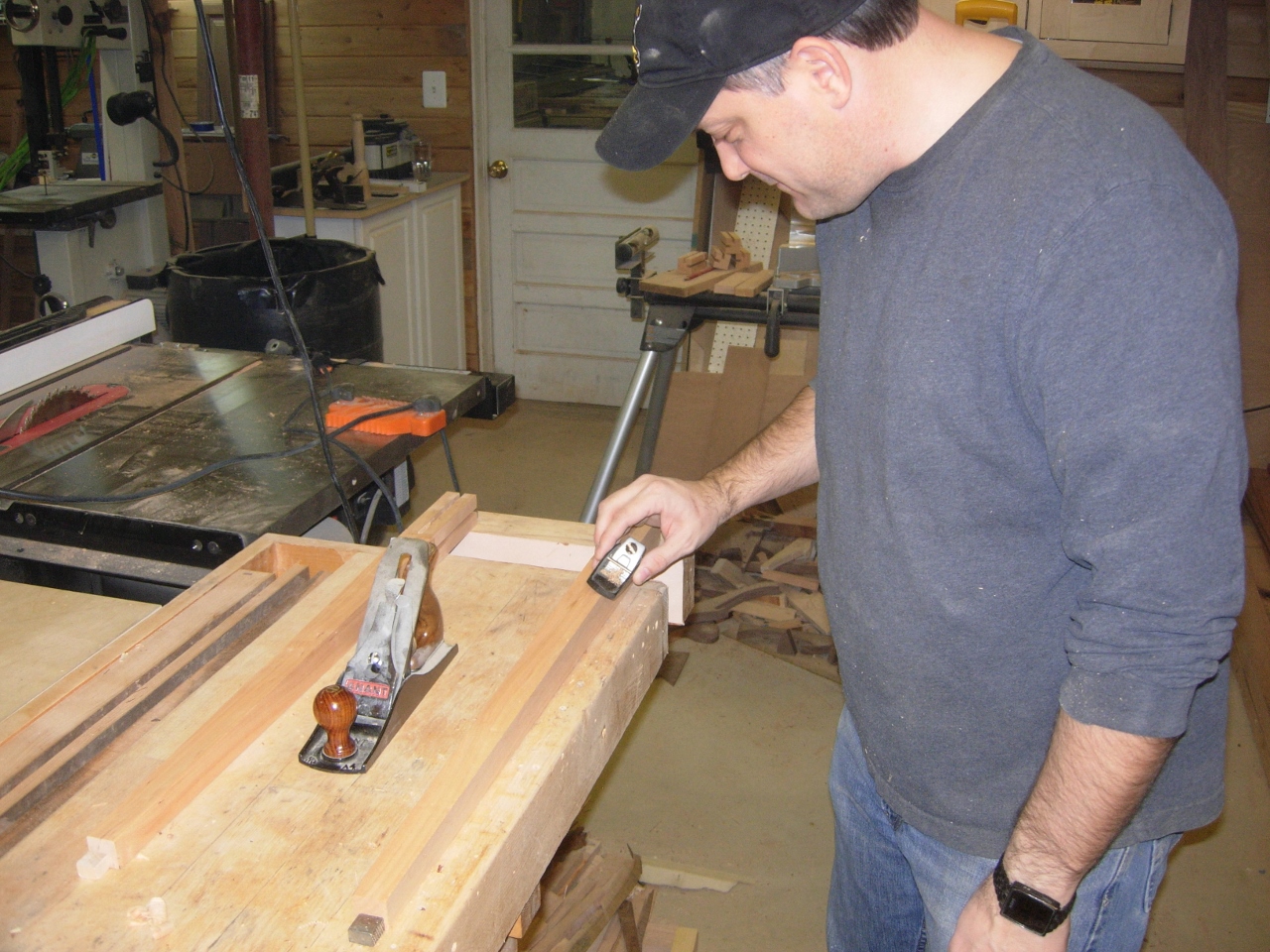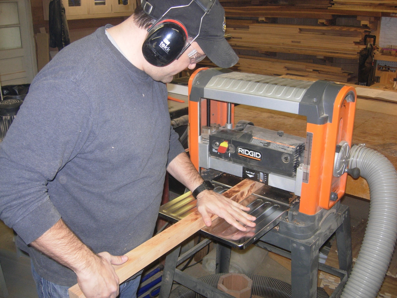 Then we planed the 4 new leg blanks down to 1-1/2″ square.