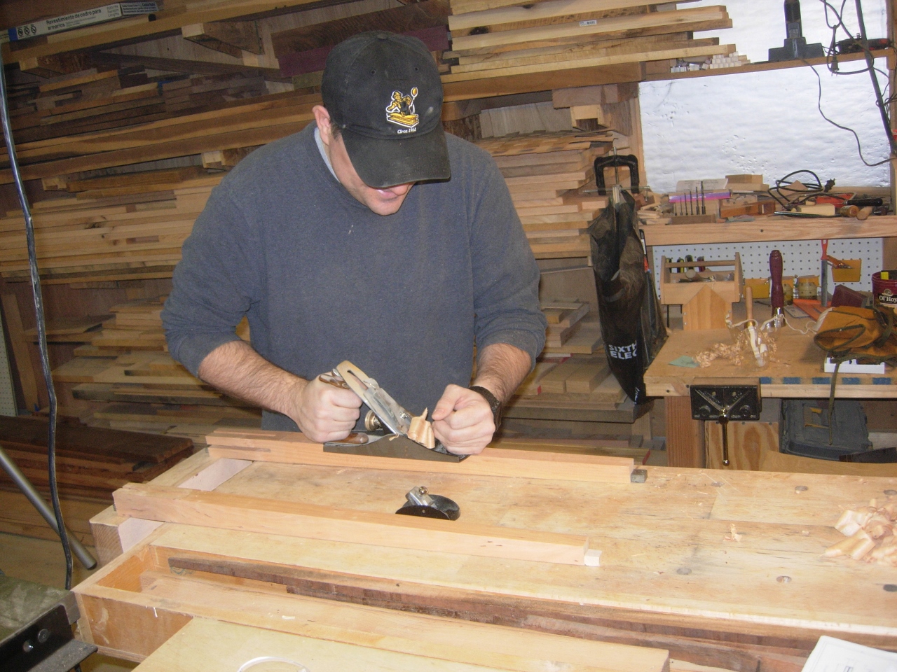 To take away that sharpness, Rob borrowed one of Adam’s tiny block planes, and made a few passes along each corner.