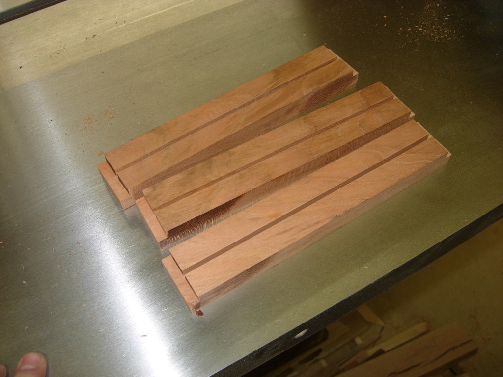 The 1/4″ x 1/4″ notch is repeated on each end of the blanks. Six of those blanks are the drawer runners. They are now complete and set aside.