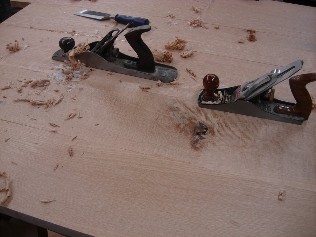 After re-sharpening my blade, I used my No.5 jack plane and my No.4 smoothing plane to flatten and smooth the back of the table.