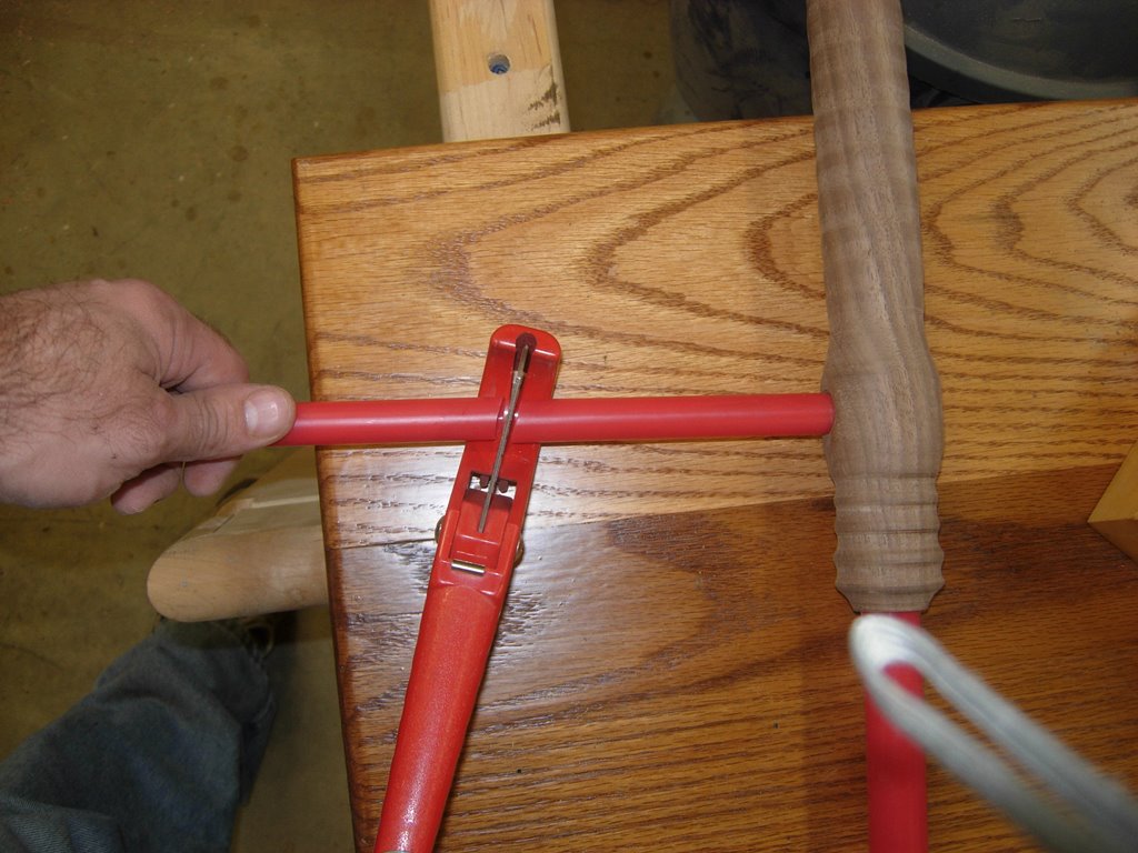 I came down about 2-1/2″ from the end, then marked and drilled a 5/8″ hole for the cross-piece.
