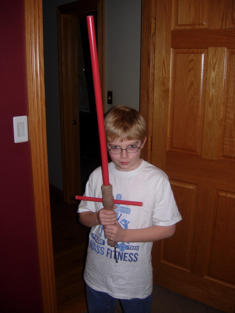 There are three types of people in this world: Star Wars fans, Star Wars geeks, and Star Wars indifferent… My three boys and I fall somewhere in between the first two. I had to cut out a couple more handles to make some more lightsabers, so I thought I would get a bit creative and try to make a quick version of the new Sith lightsaber from the new Star Wars “The Force Awakens” trailer. I spent maybe an hour on it, so don’t expect any miracles…