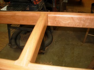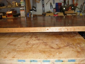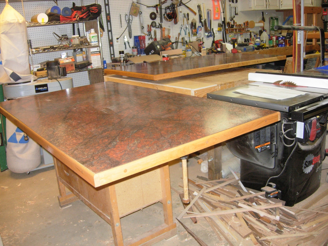 Now that everything is done, I will let it set for a few days for the polyurethane and contact cement fumes to dissipate, then try to deliver the table this weekend. It takes up the entire shop and Adam wants to get back to his bench without crawling under my projects…