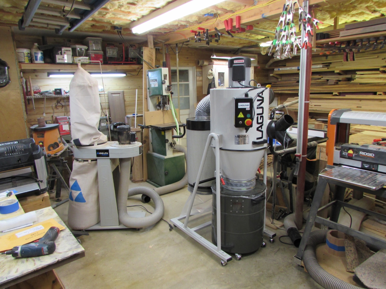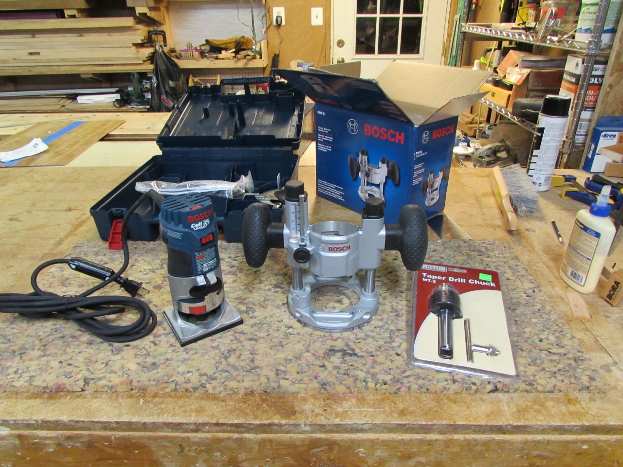 I picked up a new router, the Bosch Colt, along with the plunge base. It was so cute, I couldn’t resist. I know I already have five other routers, but you can never have too many. This one is a trim router with a very small base. It will be very handy in tight corners, but powerful enough to do dados and edge trimming as well. I also picked up a keyed chuck for the tailstock of my lathe, at a great price. My big purchase was a new dust collector, the 2hp mobile cyclone from Laguna. My old Delta still works great, but I need the capacity to run dust collection on several machines at once. This baby can do that, all by itself. It was a little pricey, but I got 15% off, at the show and it was already fully assembled, which saved me hours.