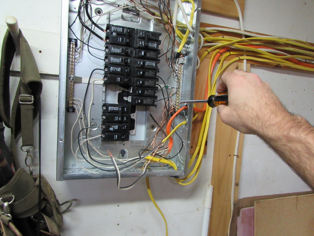 I ran it to the electric box and pulled the cover off and ran the wires inside. I added the new breaker and wired it in. I am not the neatest at running wires, but I got it all hooked up and replaced the cover.