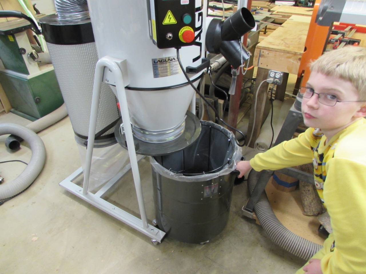 Adam fired it up and played around with the suction. It was far more powerful than my Delta, it nearly sucked his arm in. Don’t worry, it is safe enough. the inlet is in the cyclone and nowhere near the fan.