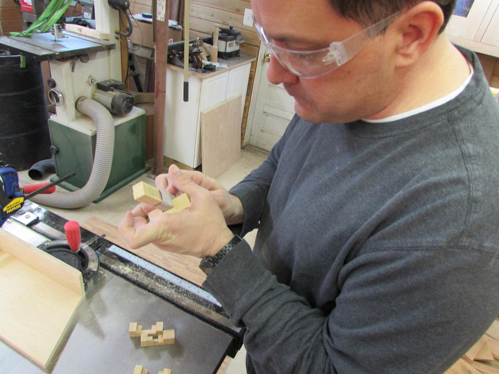 It has been a while since Rob has been over to my shop, but he was able to come over last night and he had a new project to work on. He found a link to some cool puzzle boxes called Burr Puzzles. It was in the April 2012 issue of American Woodworker magazine (Now part of Popular Woodworking magazine). Here is a link to the article, which also has plans: Burr Puzzle Boxes
