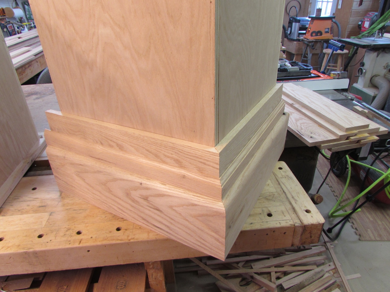 Before installing the base trim on the boxes, I need to install the bottom spacers. I once again turned to my pile of off-cuts for some 20″ long pieces that I could get 1-1/4″ of width from.