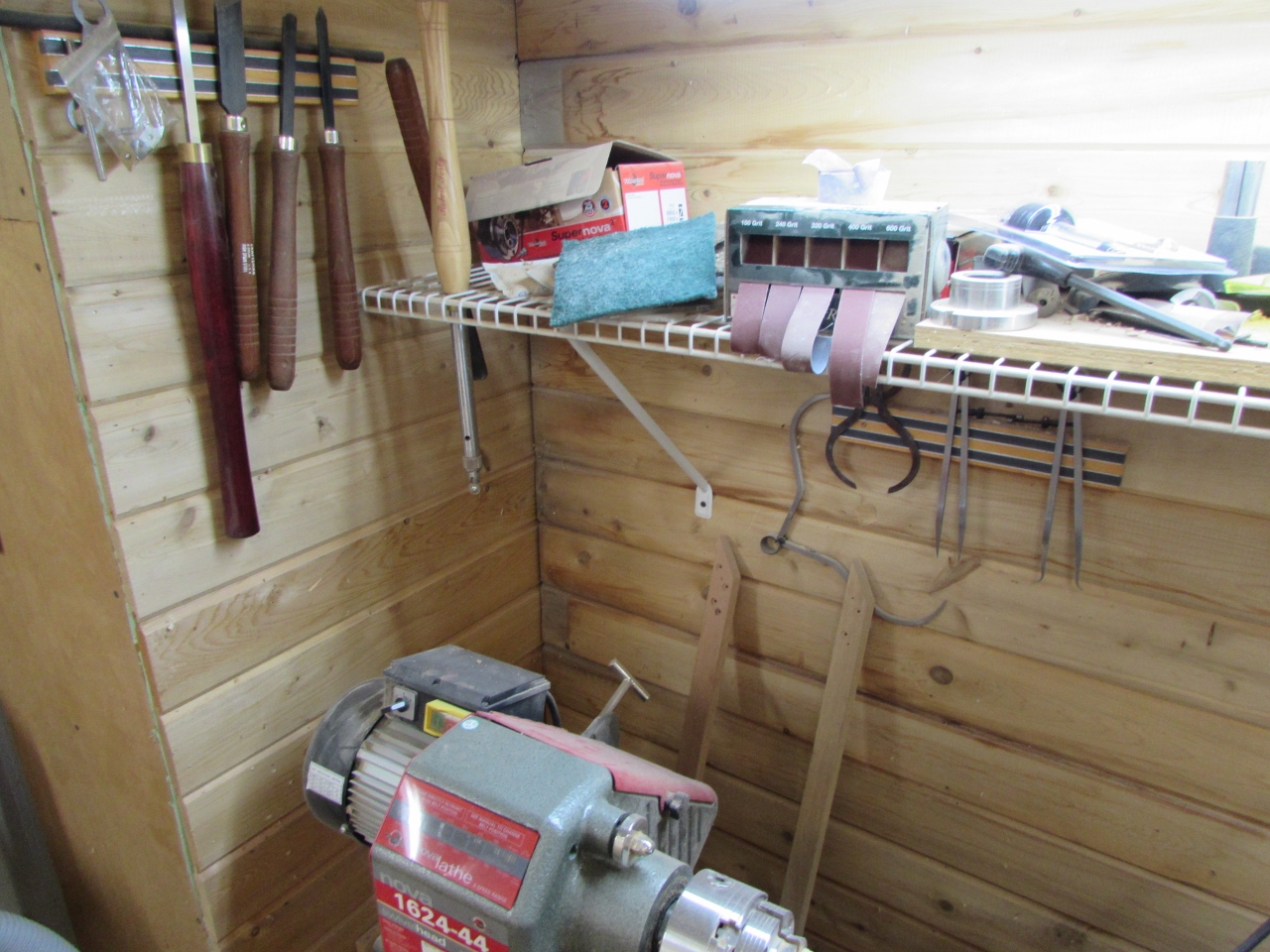 Over by my lathe, I have some sanding pads and some Scotch-Brite pads. The sanding pads are too heavy a grit, and I have never been happy with the results of sanding the finish with the Scotch-Brite, but I also noticed that I had a pack of sanding strips, for the lathe. They go all the way up to 600 grit. Only problem is that they are only 1″ wide. Oh well, a little more sanding will save me from crawling through the mess under my bench…