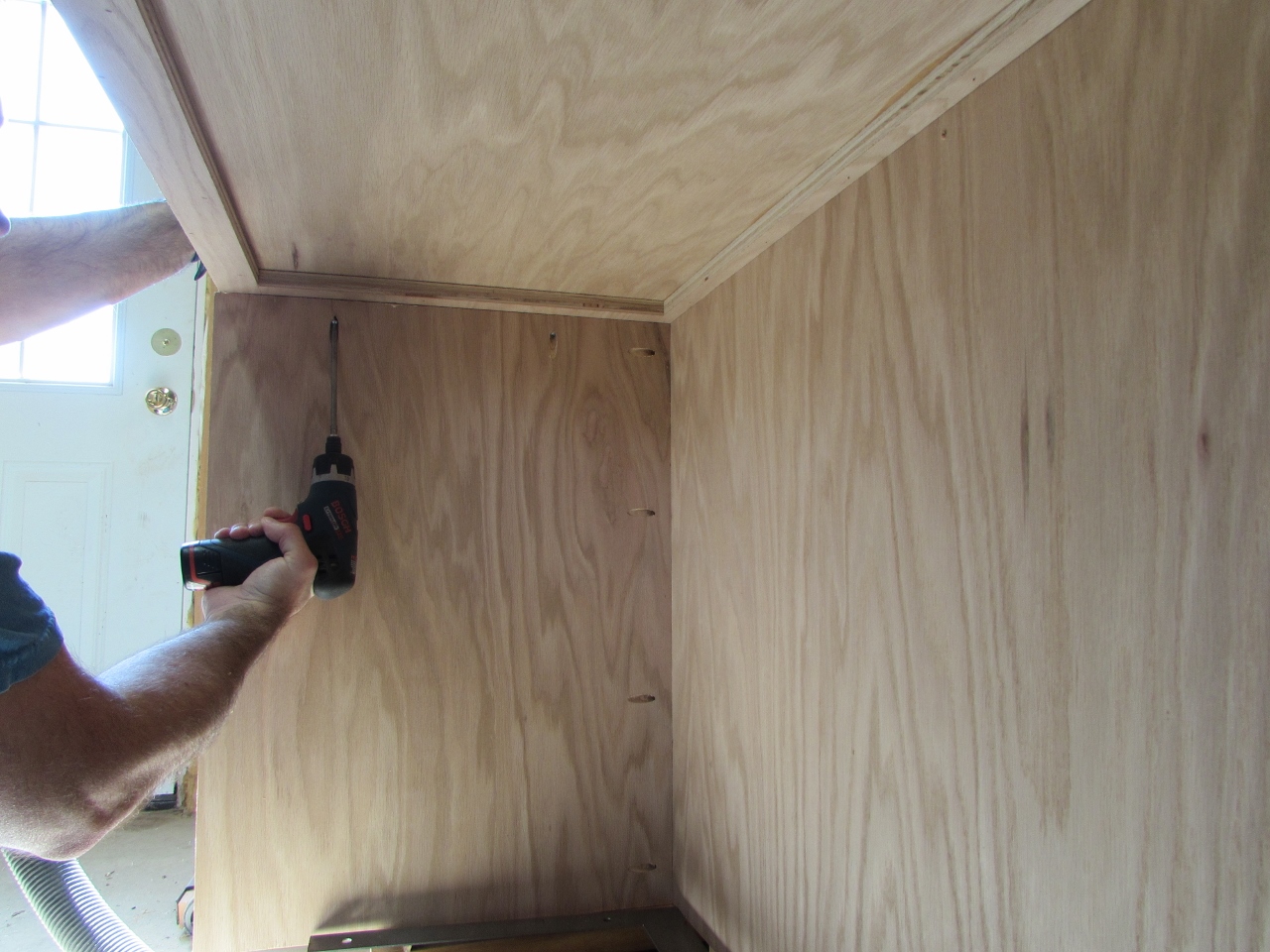 After locating the counter top, I screwed in the pocket hole screws through the holes I had in the top of the sides.