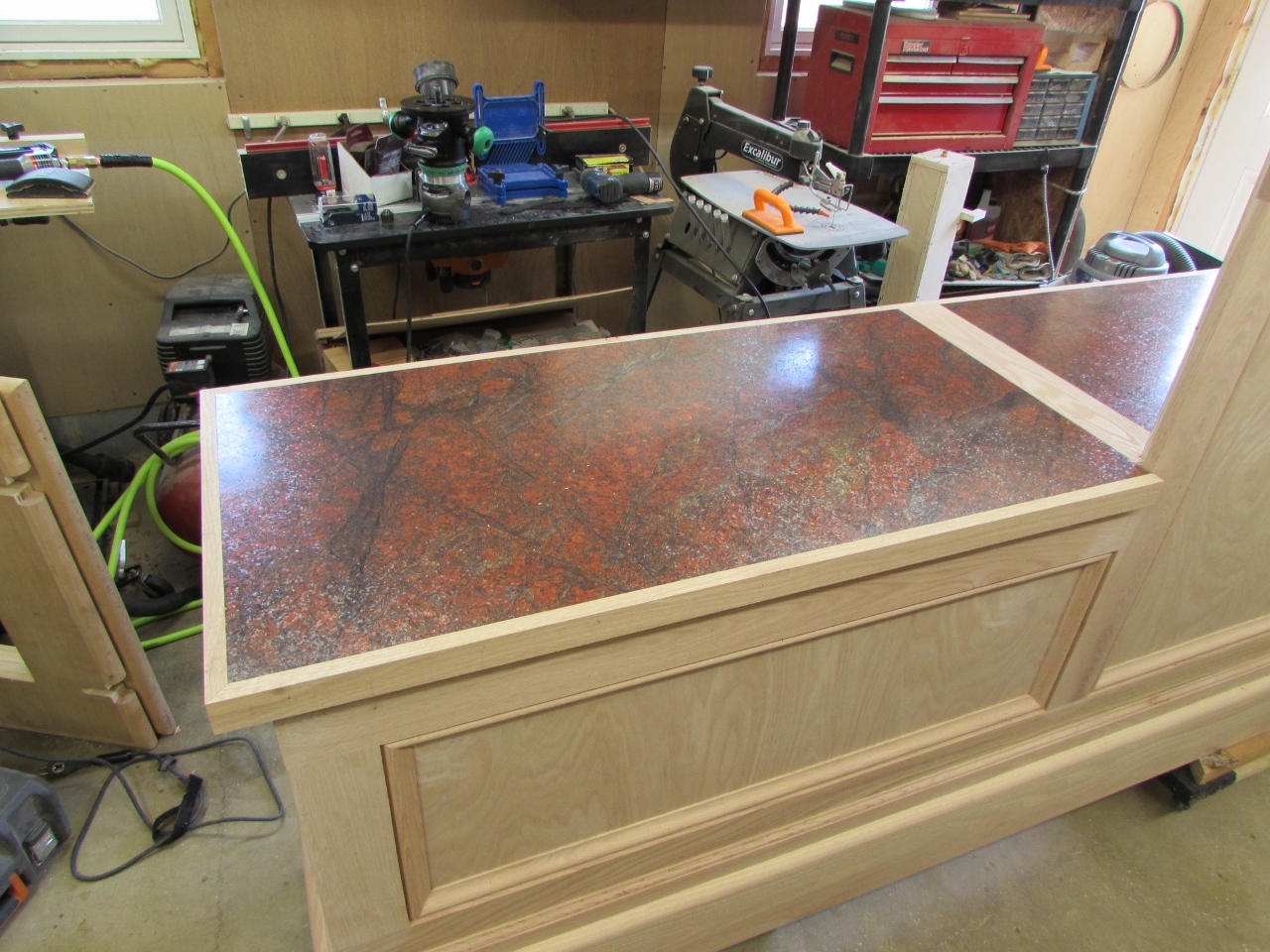 Well I managed to sneak in a few hours of shop time this weekend around Rob’s wedding. Enough time to finish the counter top anyway.