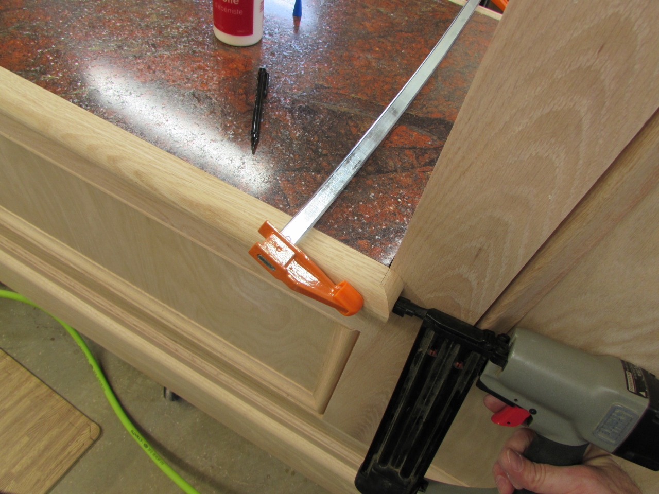 I realized that I forgot to add an additional rib above the side of the cabinet, so I took care of that, then applied glue to the top edge.