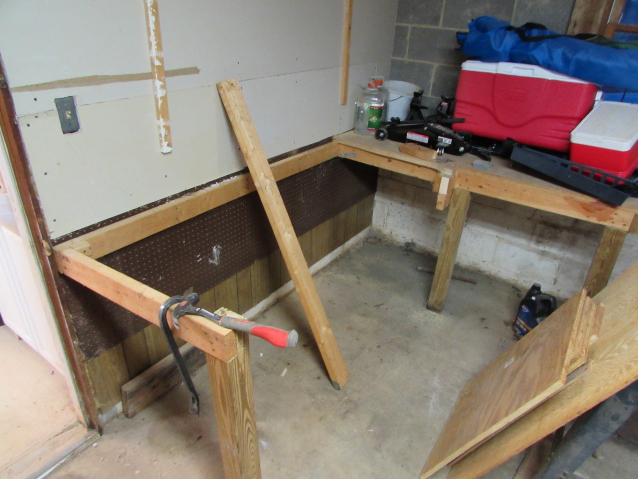 I have been feeling cramped, in the shop since upgrading the dust collector. It is nearly twice the size of the old one. The first step was to make a bit of room in the garage. I shifted everything until I could once again see my old work bench. After a very brief moment of nostalgia, I tore it out to make way for the beast.