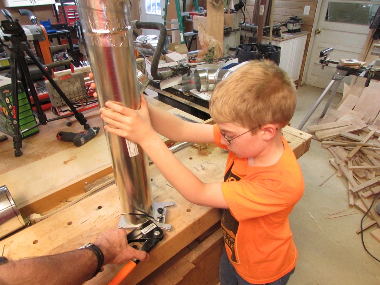 With Adam there to be an extra hand, things started moving faster. He held pipes in place, handed me pieces of tape, and reloaded the riveter while I worked.