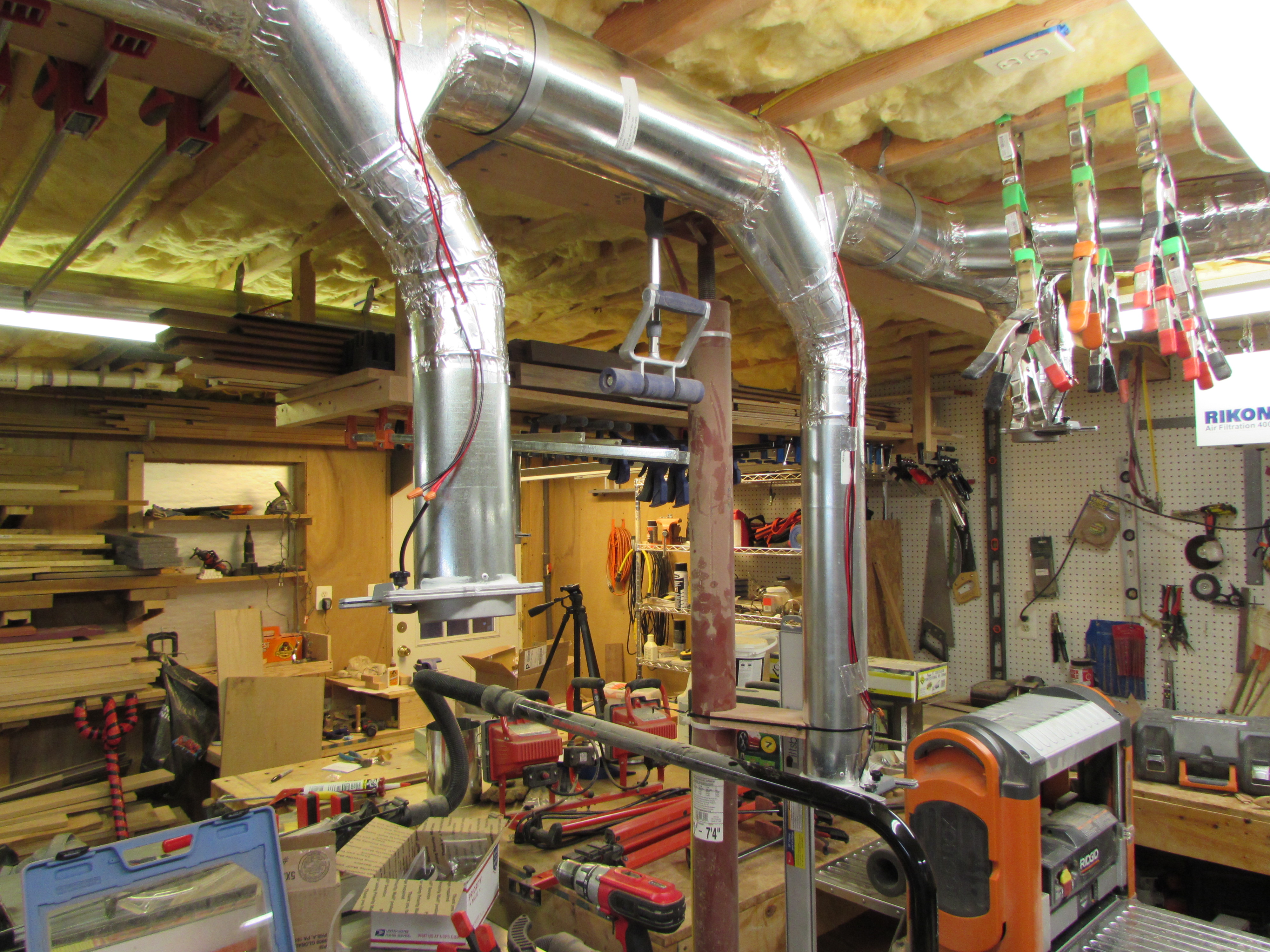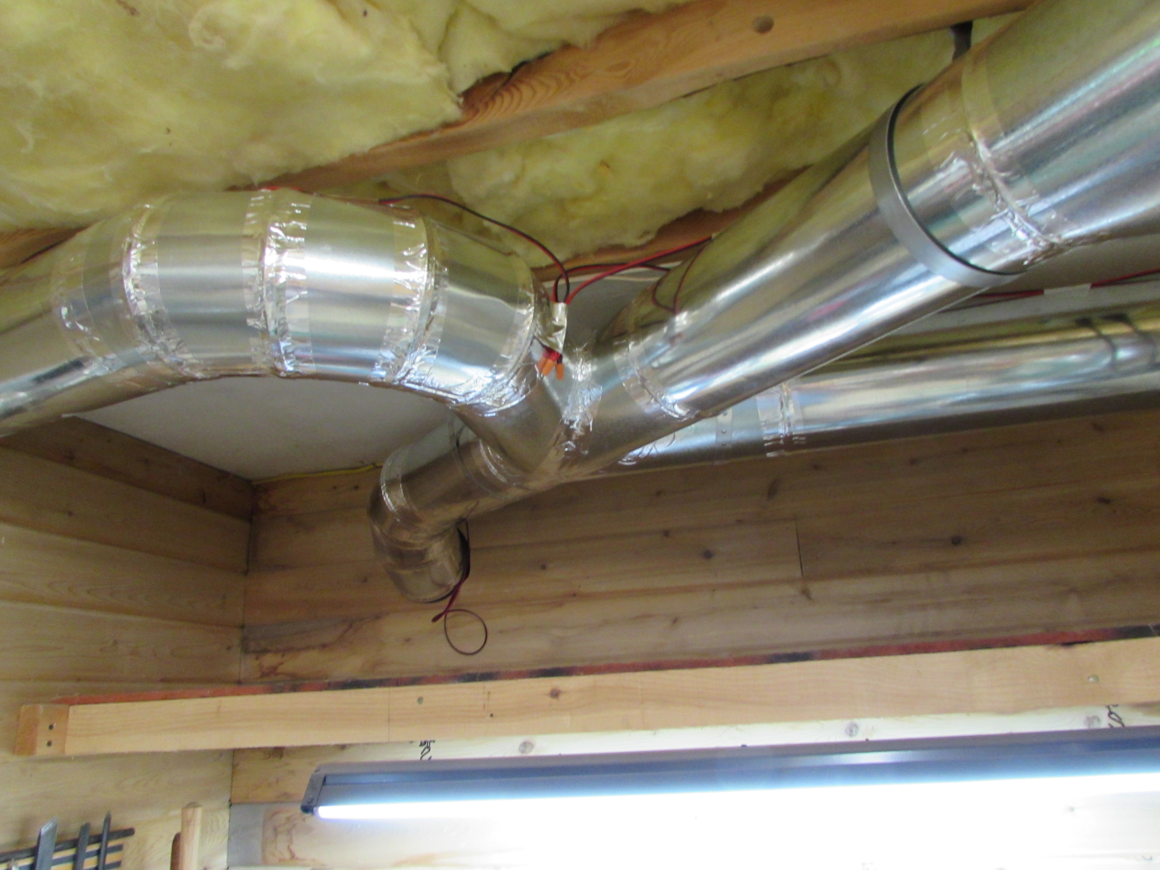 I proceeded to connect up each duct in parallel, then tied all three runs together before running them out to the garage.