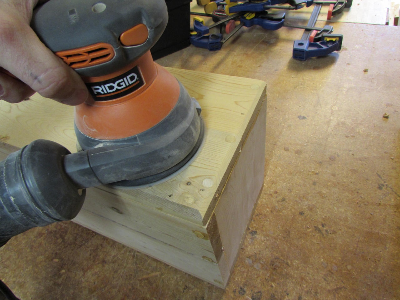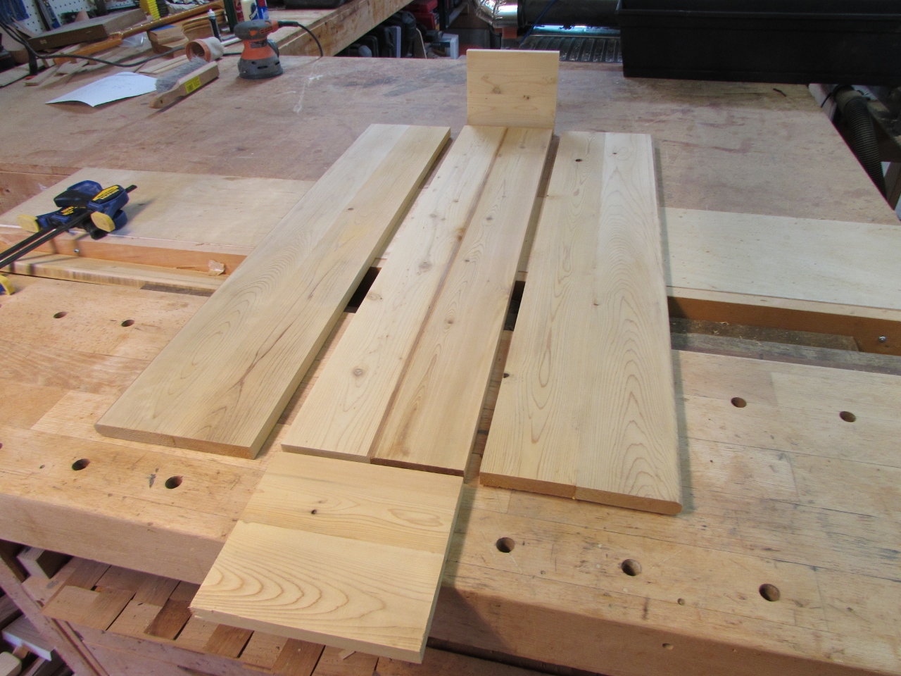 When everything was dry enough to remove the clamps, I scraped off the excess glue with a wide chisel and sanded down all of the panels.