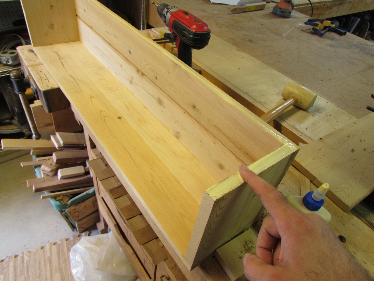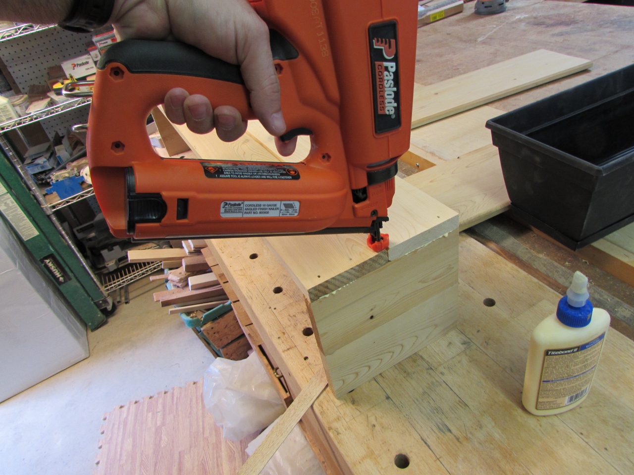 I applied glue to all of the joining edges before nailing and doweling them. Hopefully all three of these joining methods will be strong enough together.