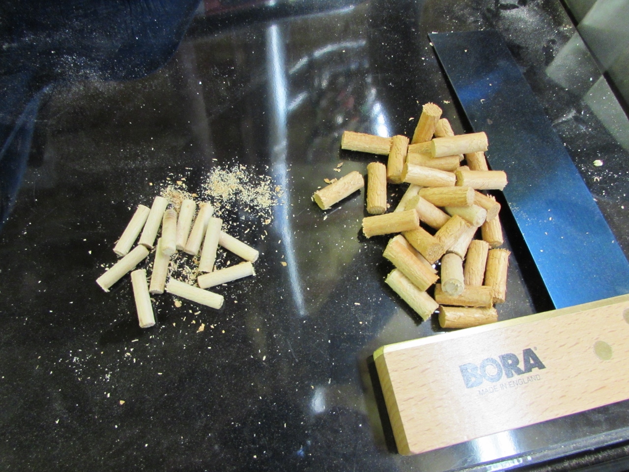 I decided to try thinly coating the dowels in glue by rolling them in the glue before inserting them. This worked better, but it was still a little messy.