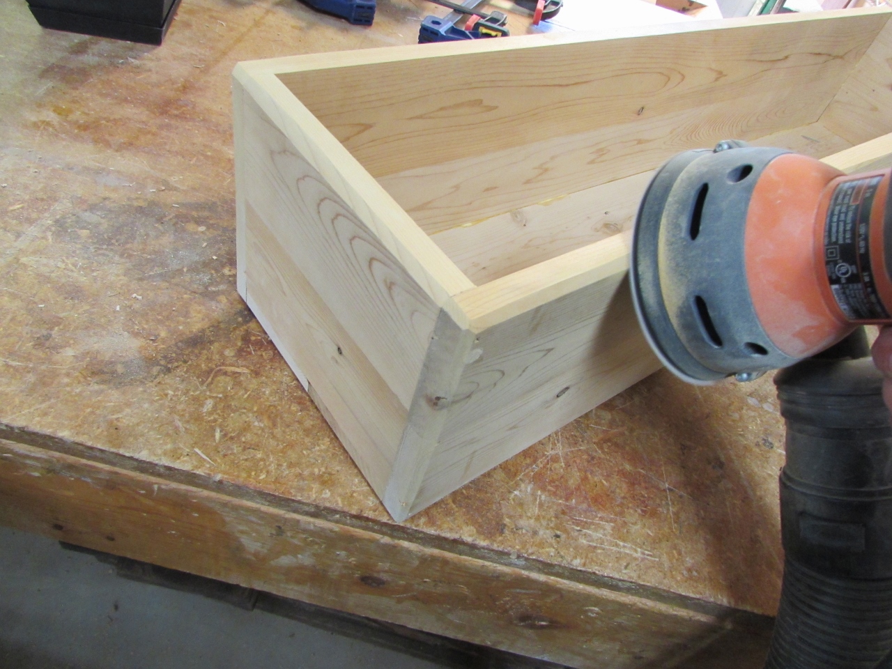 When the glue was dry enough, I sanded all of the dowels and the joints to clean up all the excess glue. I also sanded a 45 degree angle on all of the outside edges.