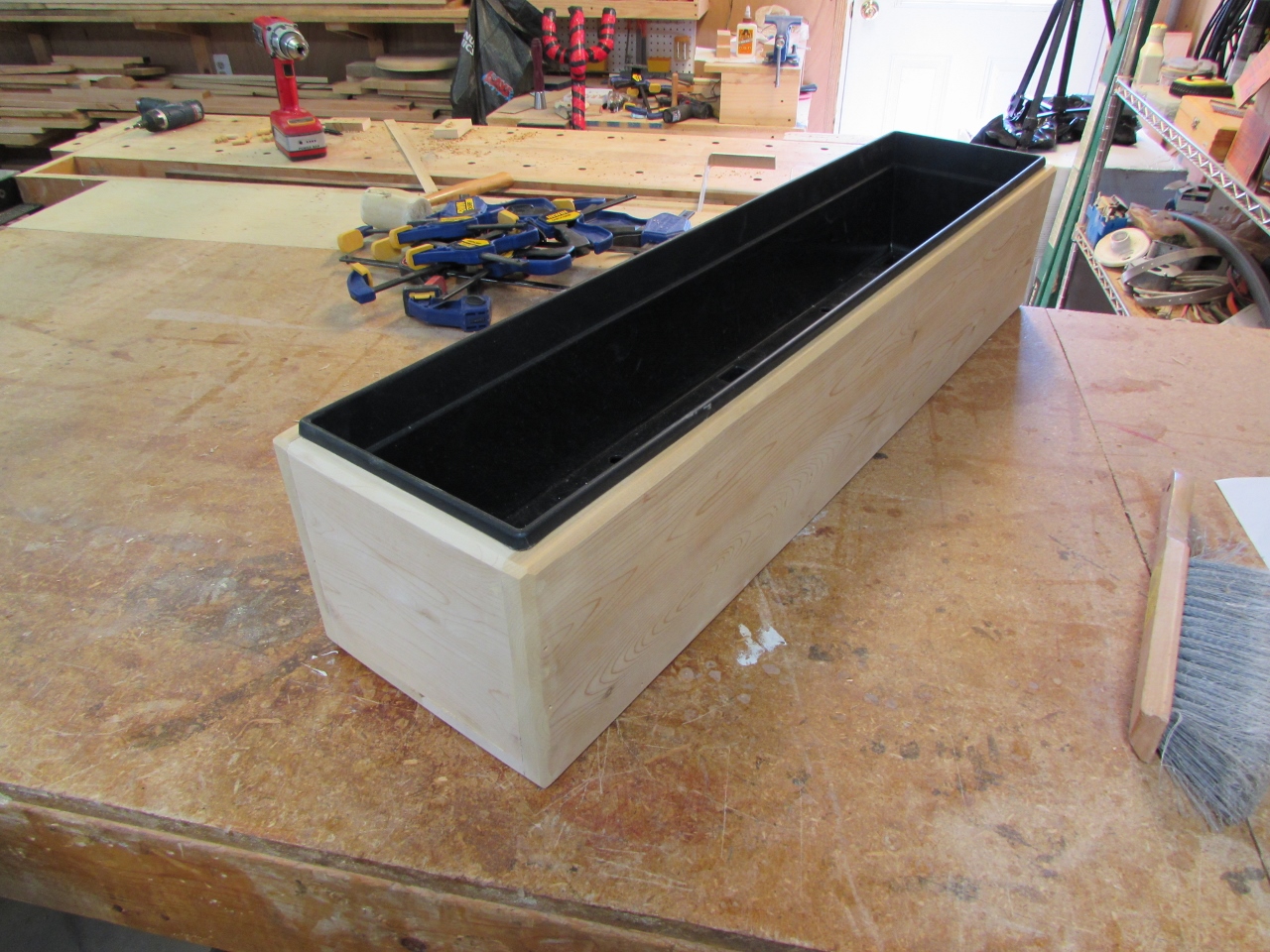 My wife wants to grow some herbs on the deck so I picked up a plastic window box, at the store. I have some cedar siding left over, that a friend gave me, so I am going to make a planter that will hang off the deck rail.
