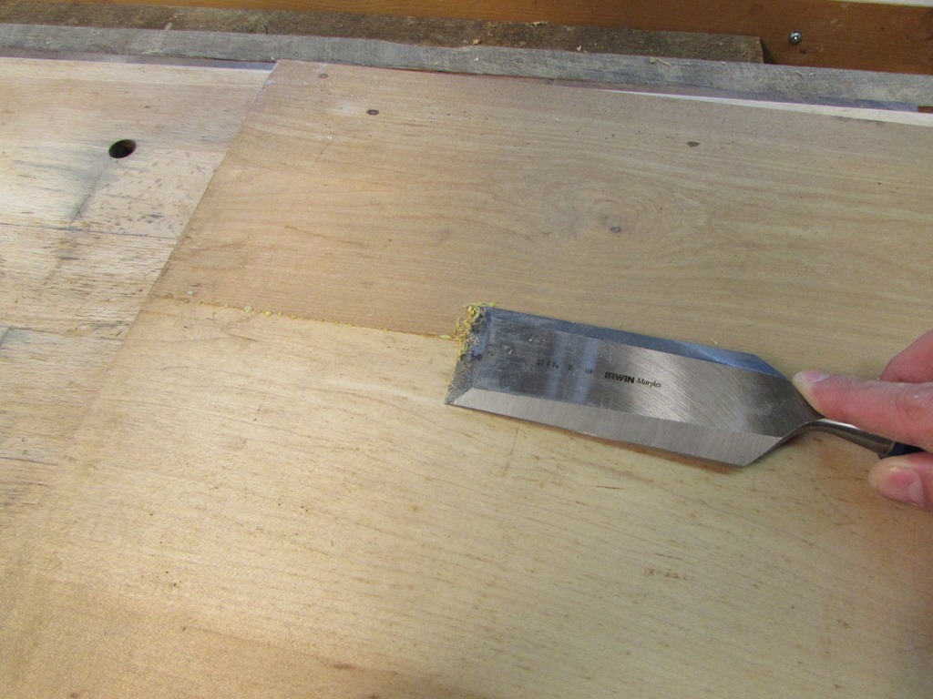 Next, I used a card scraper and a sander to smooth out the seam and to clean up the face of the board.