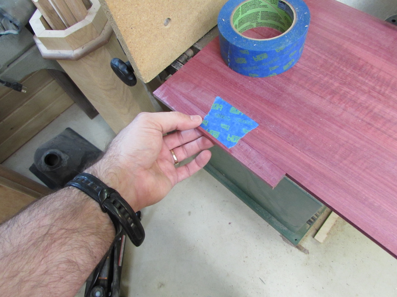 Being a tropical, South American wood, it tends to be very resinous. I rubbed down the edges with denatured alcohol to remove any oils or resins from the glue surfaces, at least for the time it will take to glue the boards up.