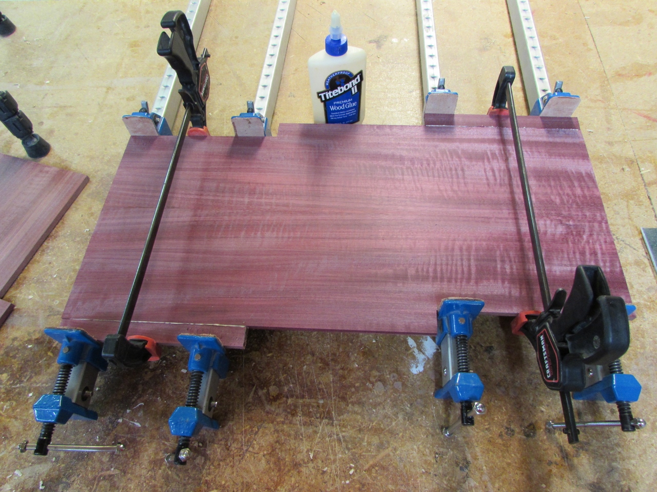 I book matched the panels and applied glue to the edges, then clamped both panels up.