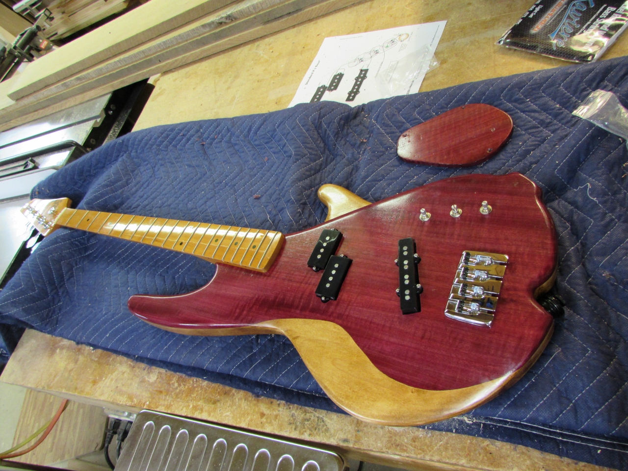 With the finish as complete as it is going to get, I moved on to installing the hardware. I located and pre-drilled the holes for the tail piece, and attached it.