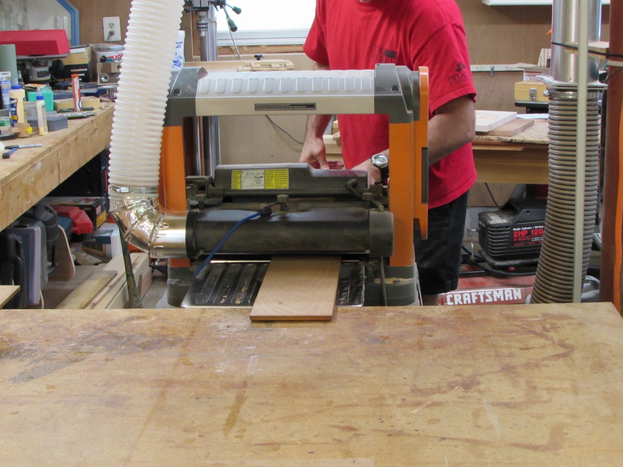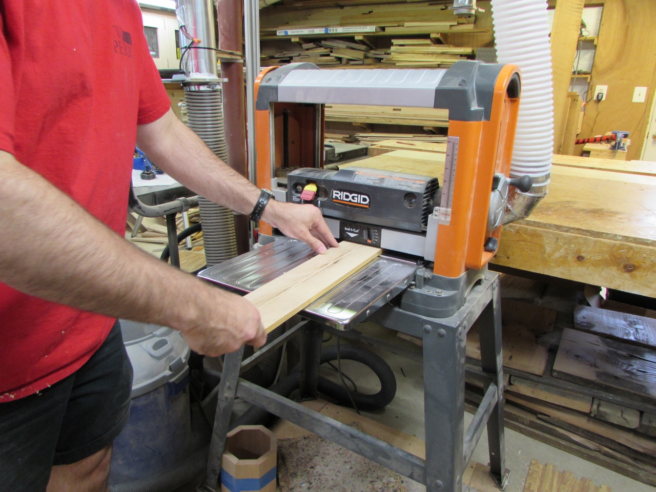 To remove the narrow rib and the burning, that remains, I ran the boards through the planer. I took them down to their final thickness of 5/16″.