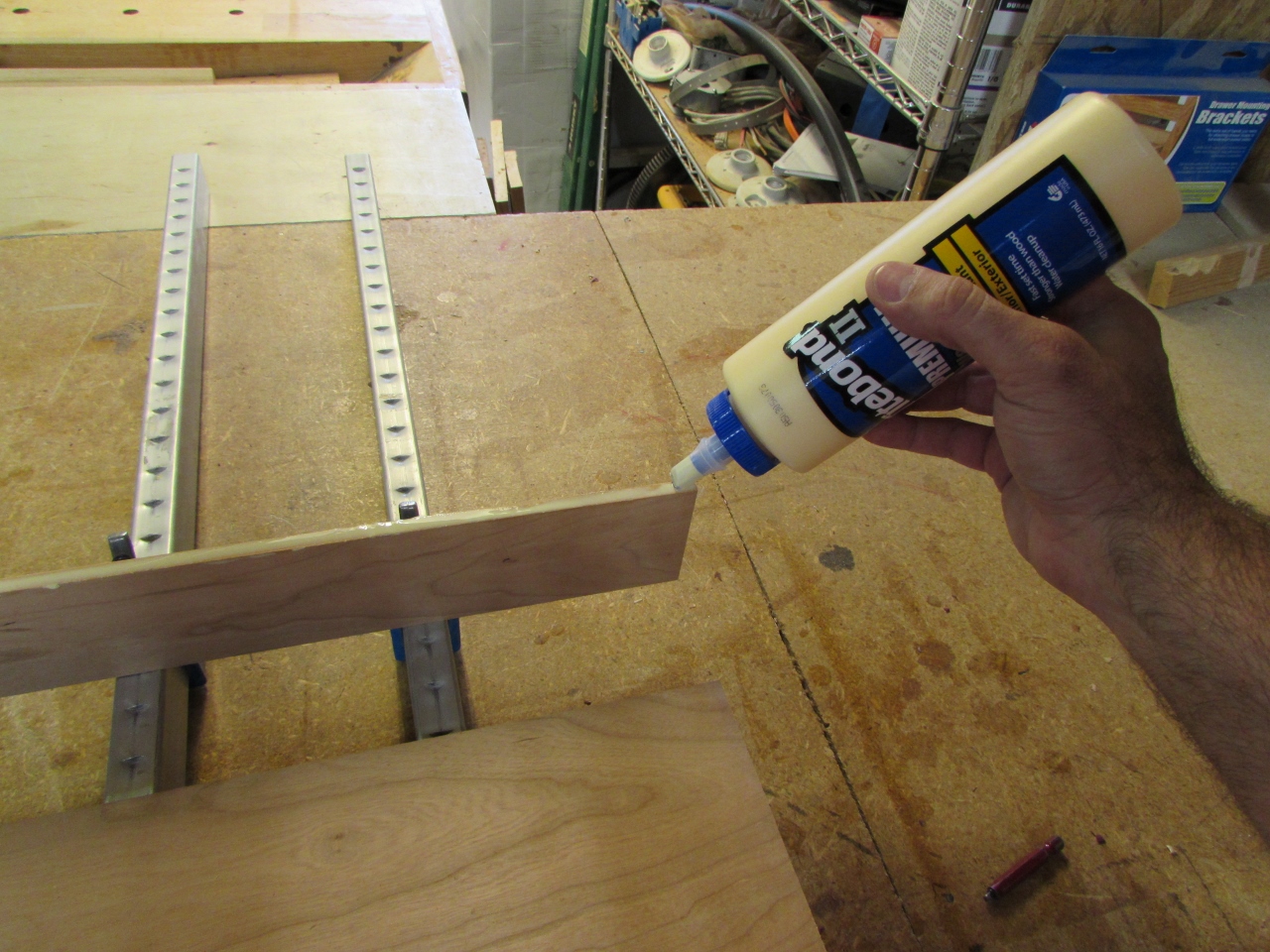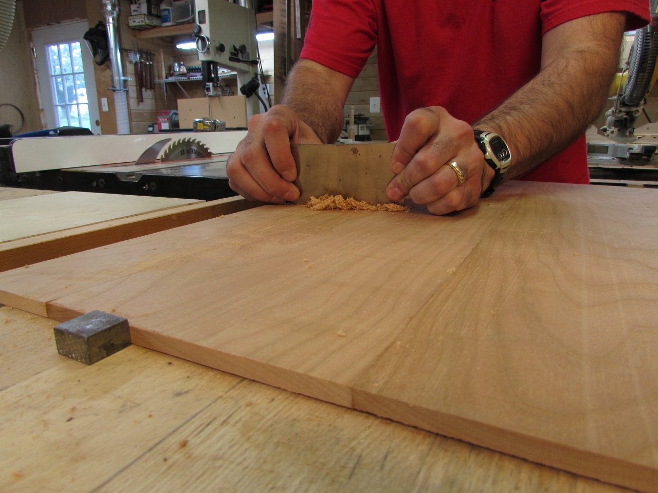 For the backer board, I cut and joined some 3/4″ maple boards. The whole maple panel is about 1/2″ wider than the cherry one.