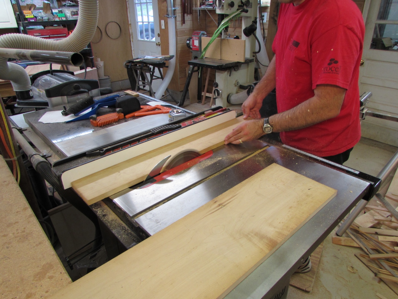 I planed it down to a little thinner than 5/16″ this time and I jointed the edges on the table saw.