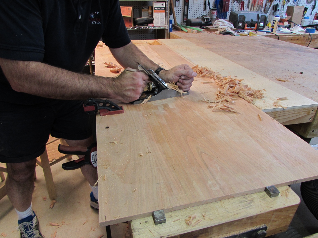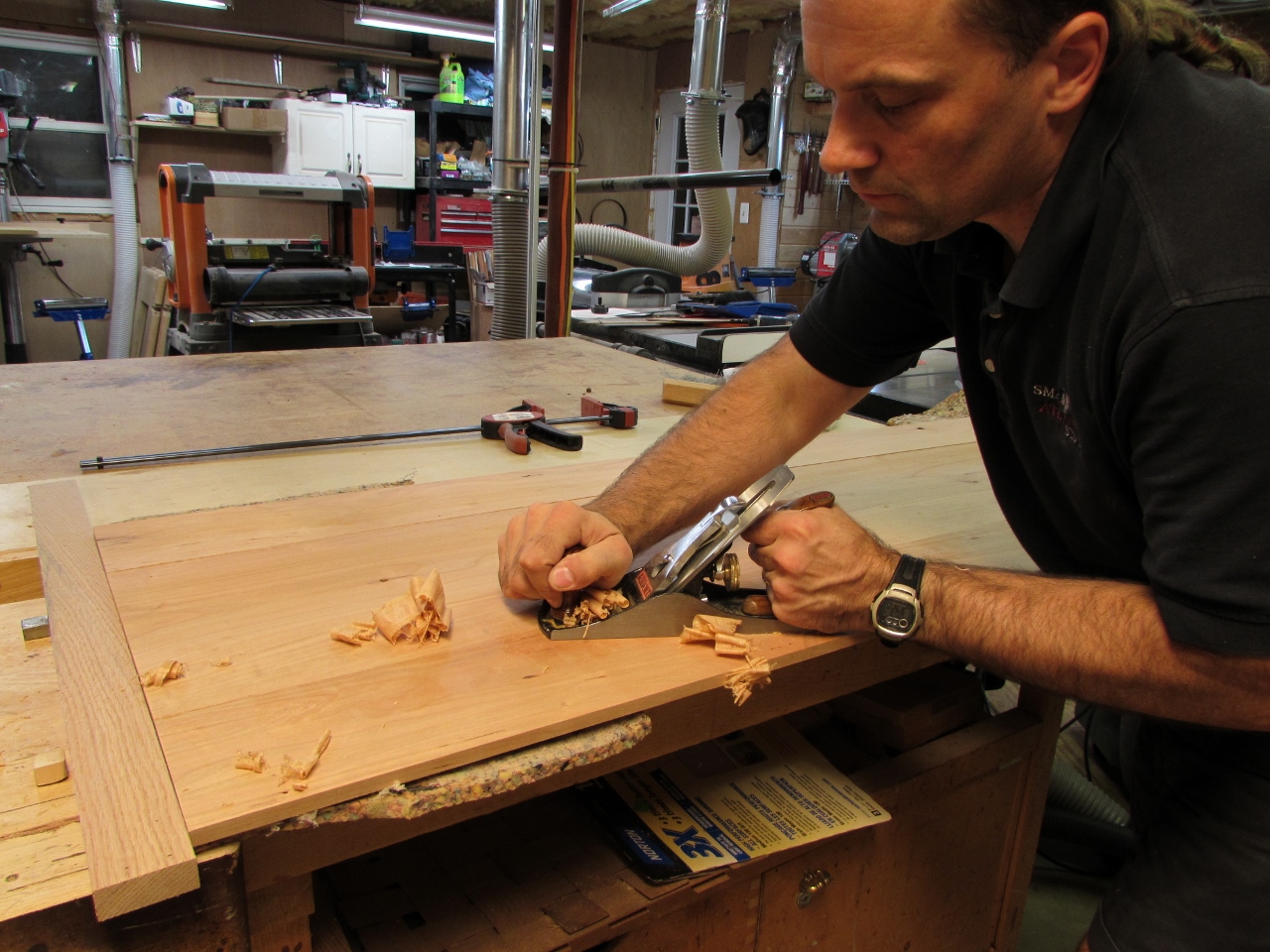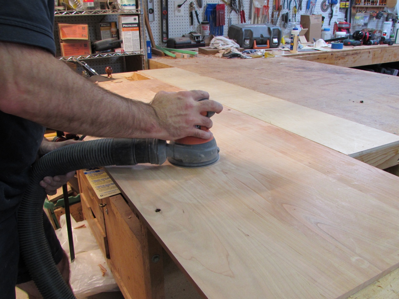I worked with both my smoothing plane and my orbital sander to get the panel joints smoothed out. A good smoothing plane does not really need to be followed up with a sander, but I do not have a good smoothing plane so mine did…