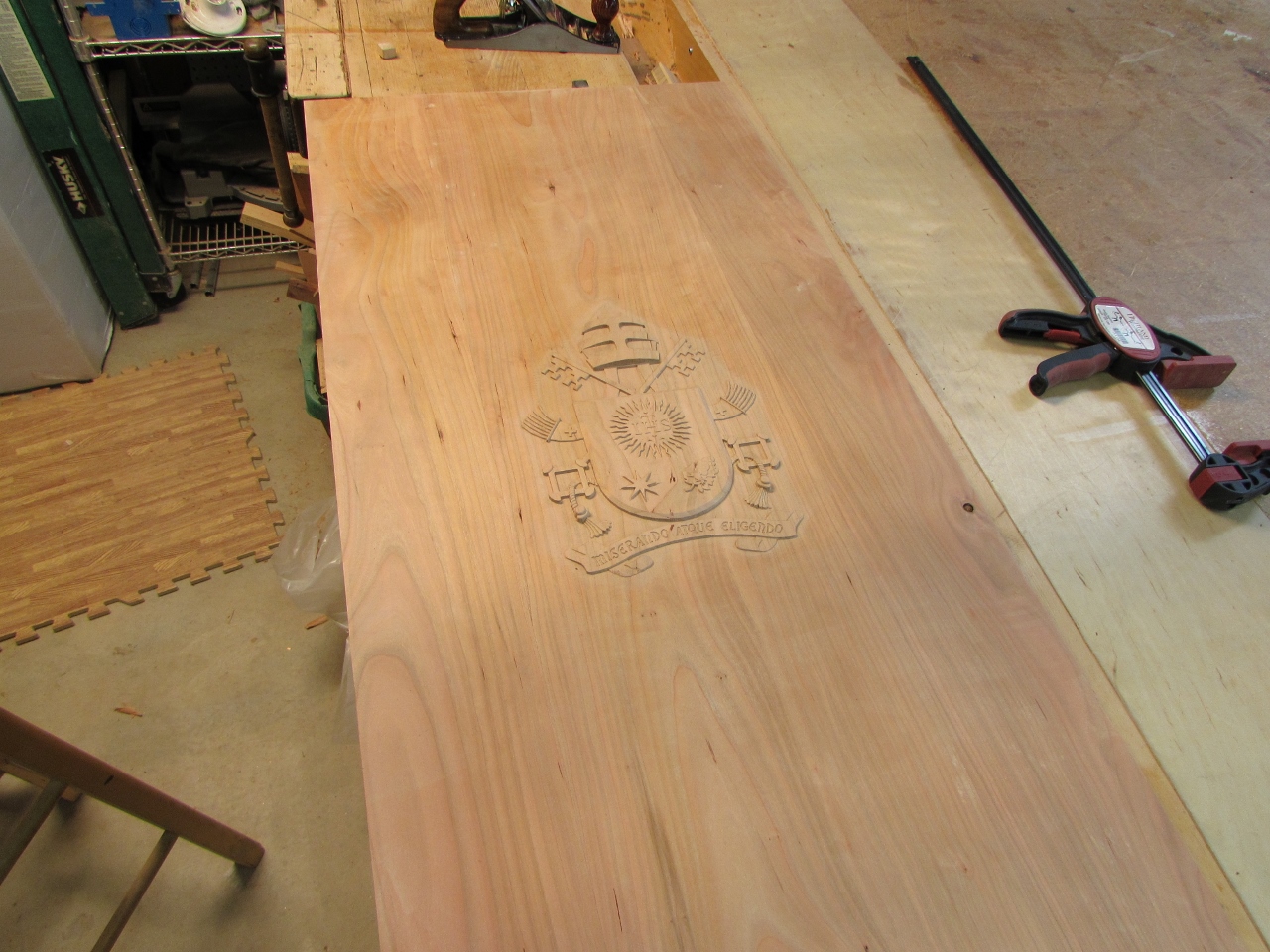 The whole thing turned out pretty good. I should be able to turn the panel over to my buddy Dave next week, for installation into the Papal chair. I will try to get some pictures of the furniture under construction.