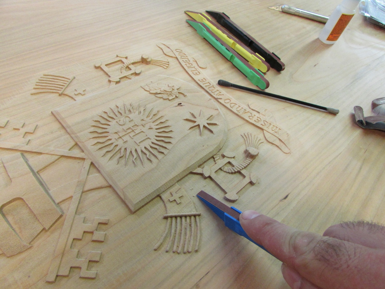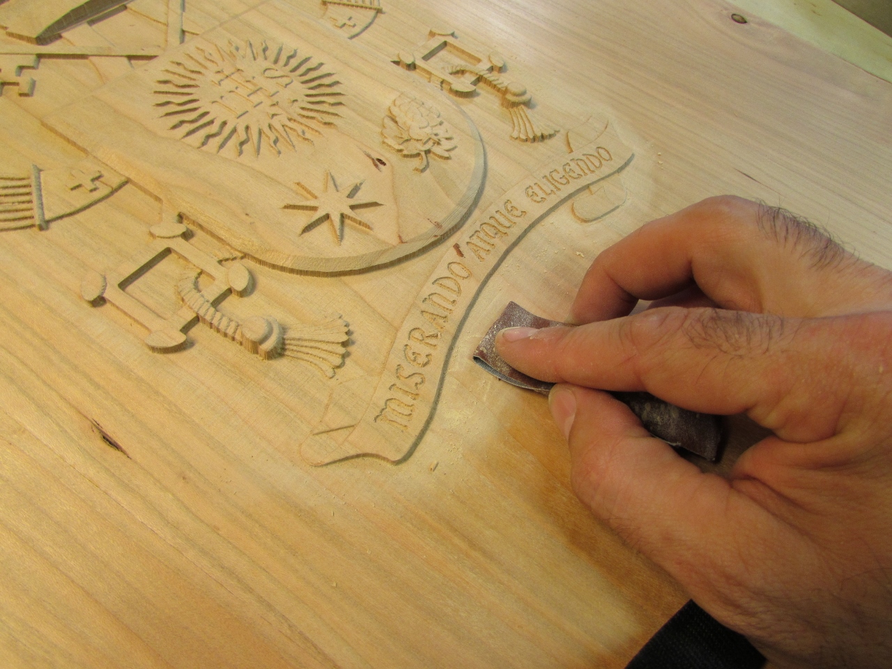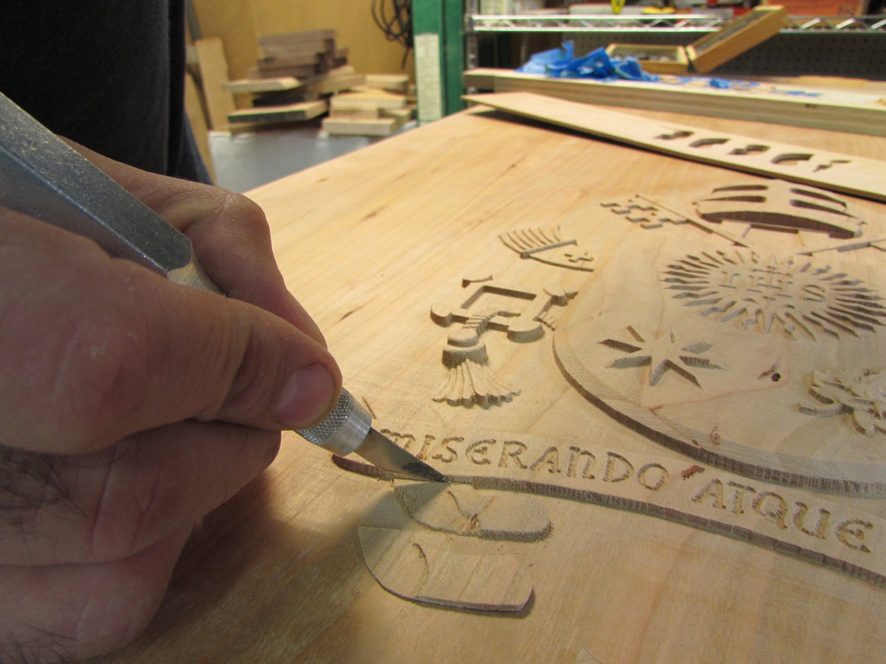 I bought some different detail sanding sticks and made an effort to sand around the emblem. the carver leaves behind faint ridges that don’t take much to remove, but with this much detail, I had to be very careful.