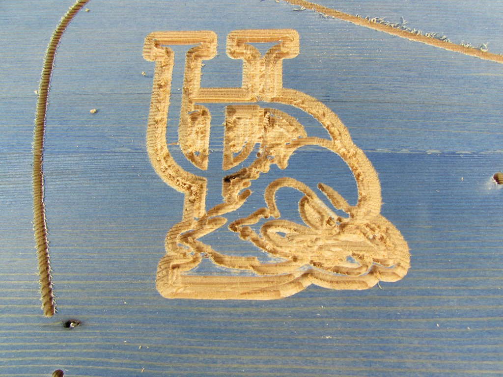 The UDEL logo was another disappointment, but not entirely unexpected. I find that the more detailed carves work best on tight-grained hardwoods. I will route this logo away, with my hand router, then carve a new one from maple or something similar to glue in its place.