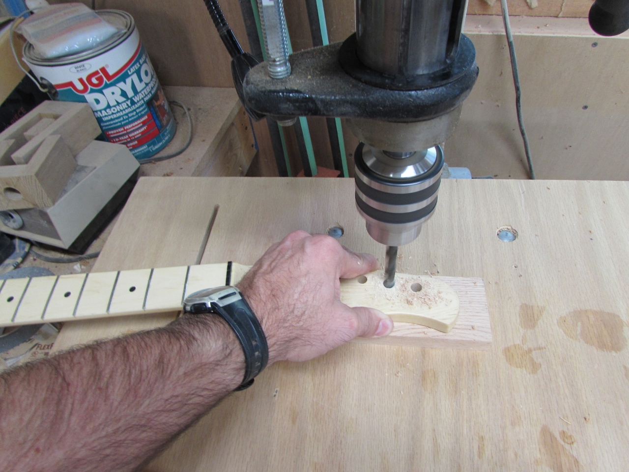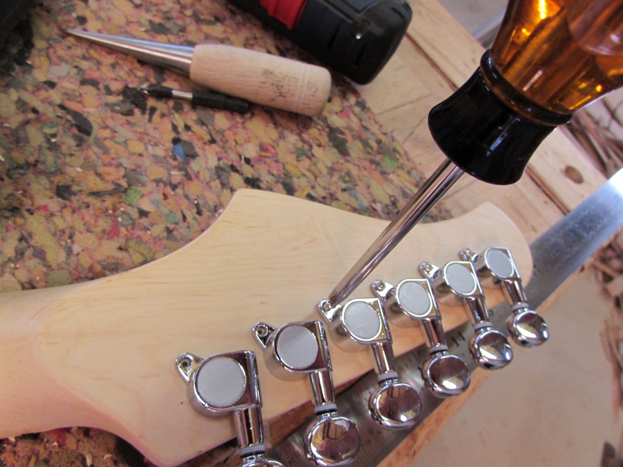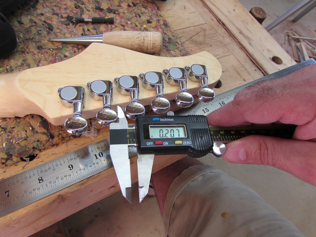 To fix this, I only need to ream out the holes with a 10mm (or 3/8″) drill bit. Once that was done, the tuners fit great.