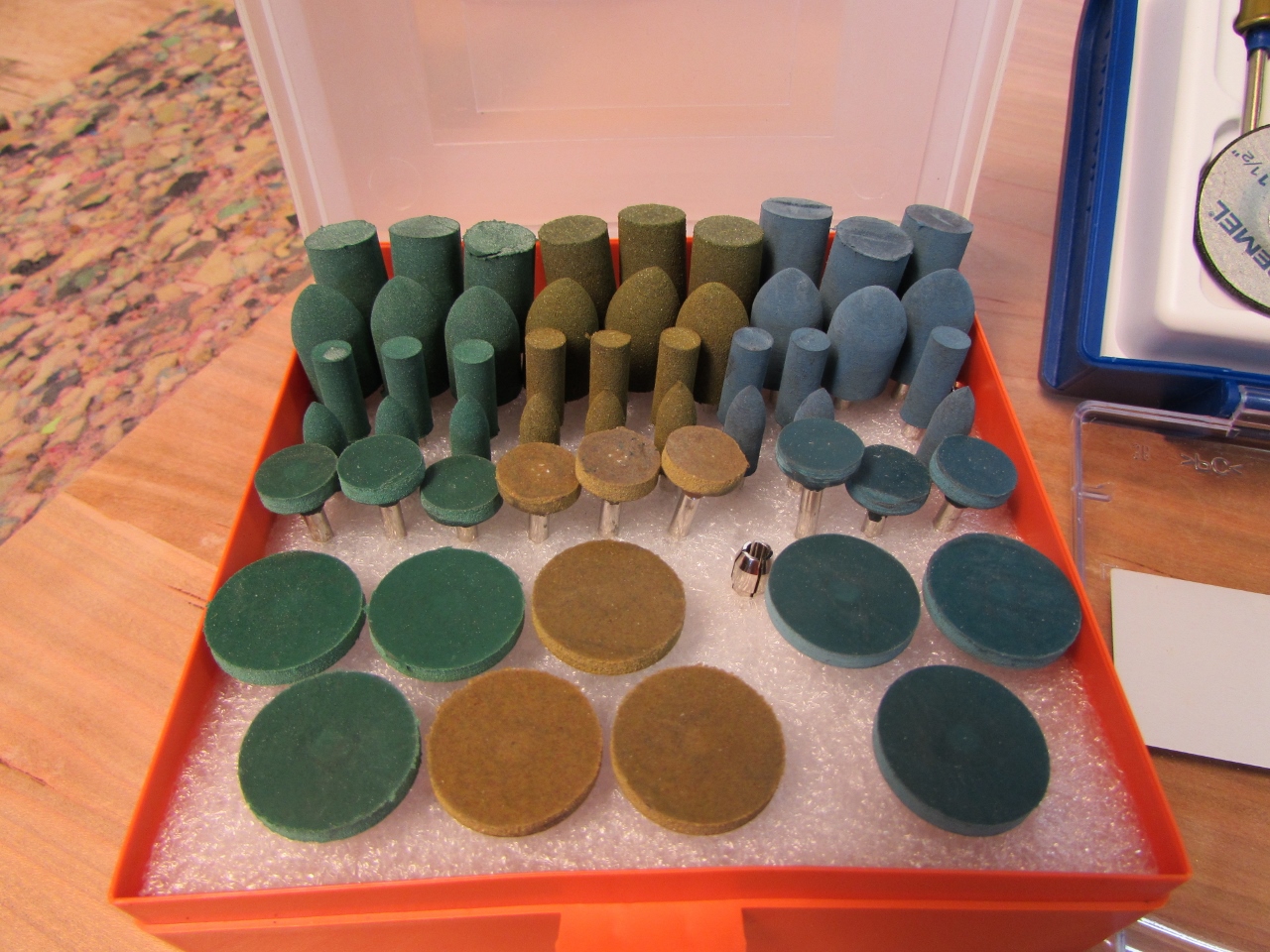 Dremel has come out with a new EZ Lock system that makes swapping out different sanding and polishing wheels a lot easier, So I bought two different sanding/polishing sets.