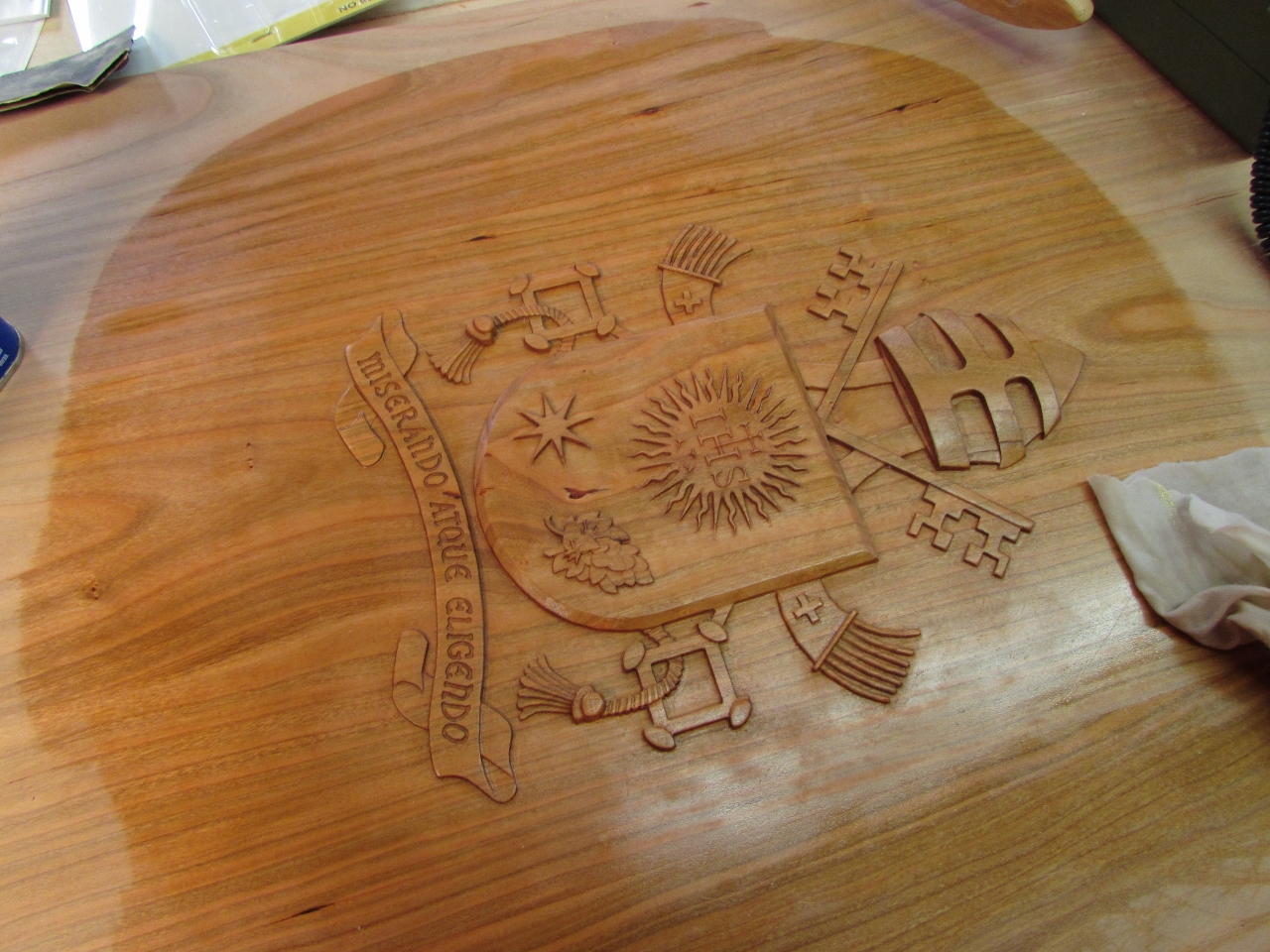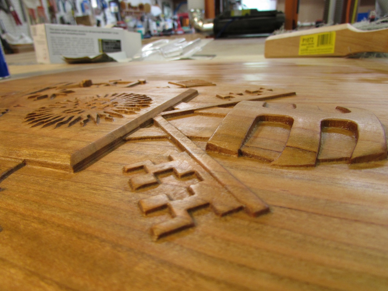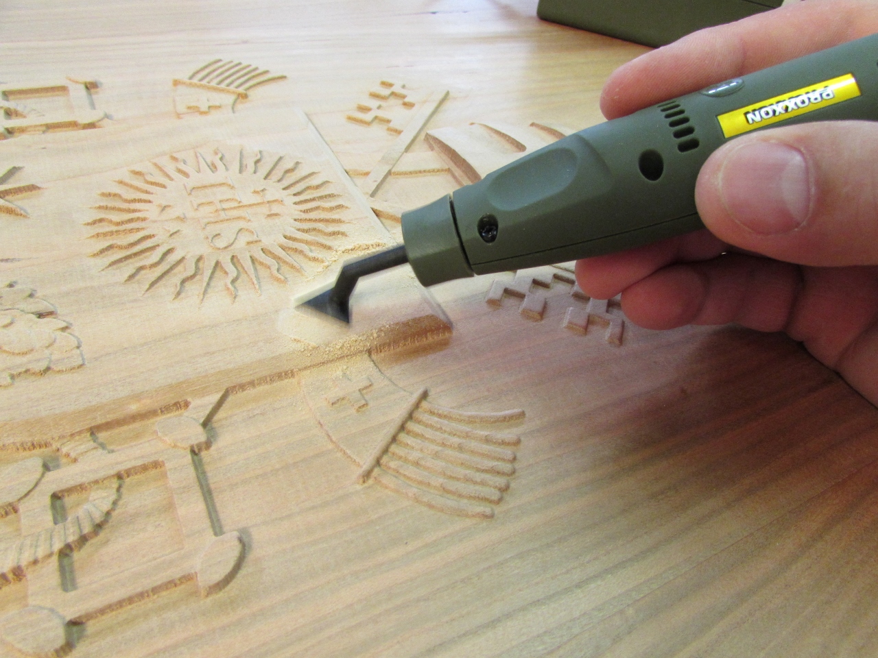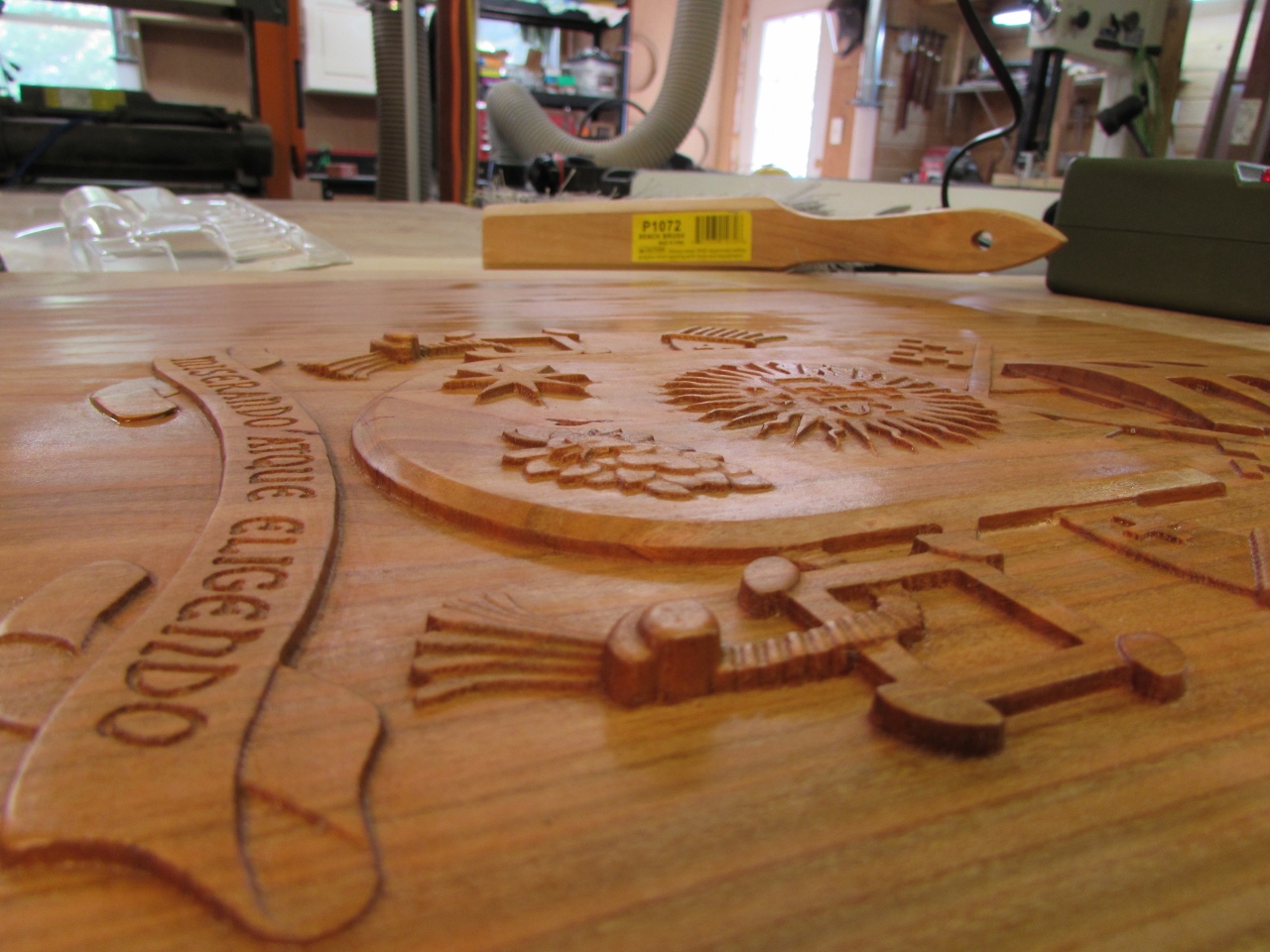 I have been avoiding the hard part of the Papal seal carve. I have to detail sand all of the nooks and crannies. The cut marks that are left behind by my Carvewright CNC router are very shallow, but they show up every 1/32″ over the entire carve. To tackle this problem, I invested in several detail sanding options.