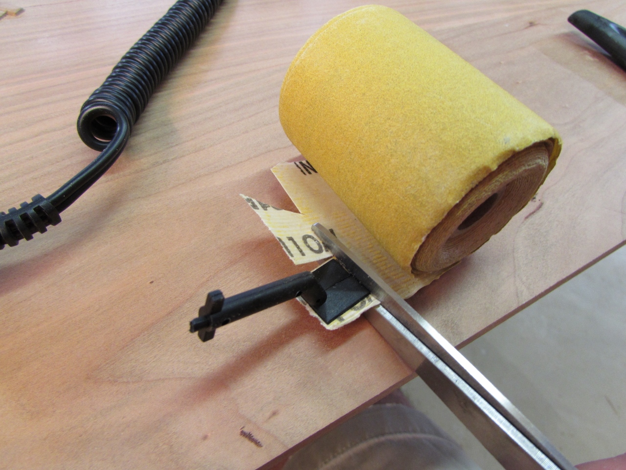 I wanted to try some of the other shapes, so I cut some adhesive paper off the roll and trimmed it to match the square sanding head.
