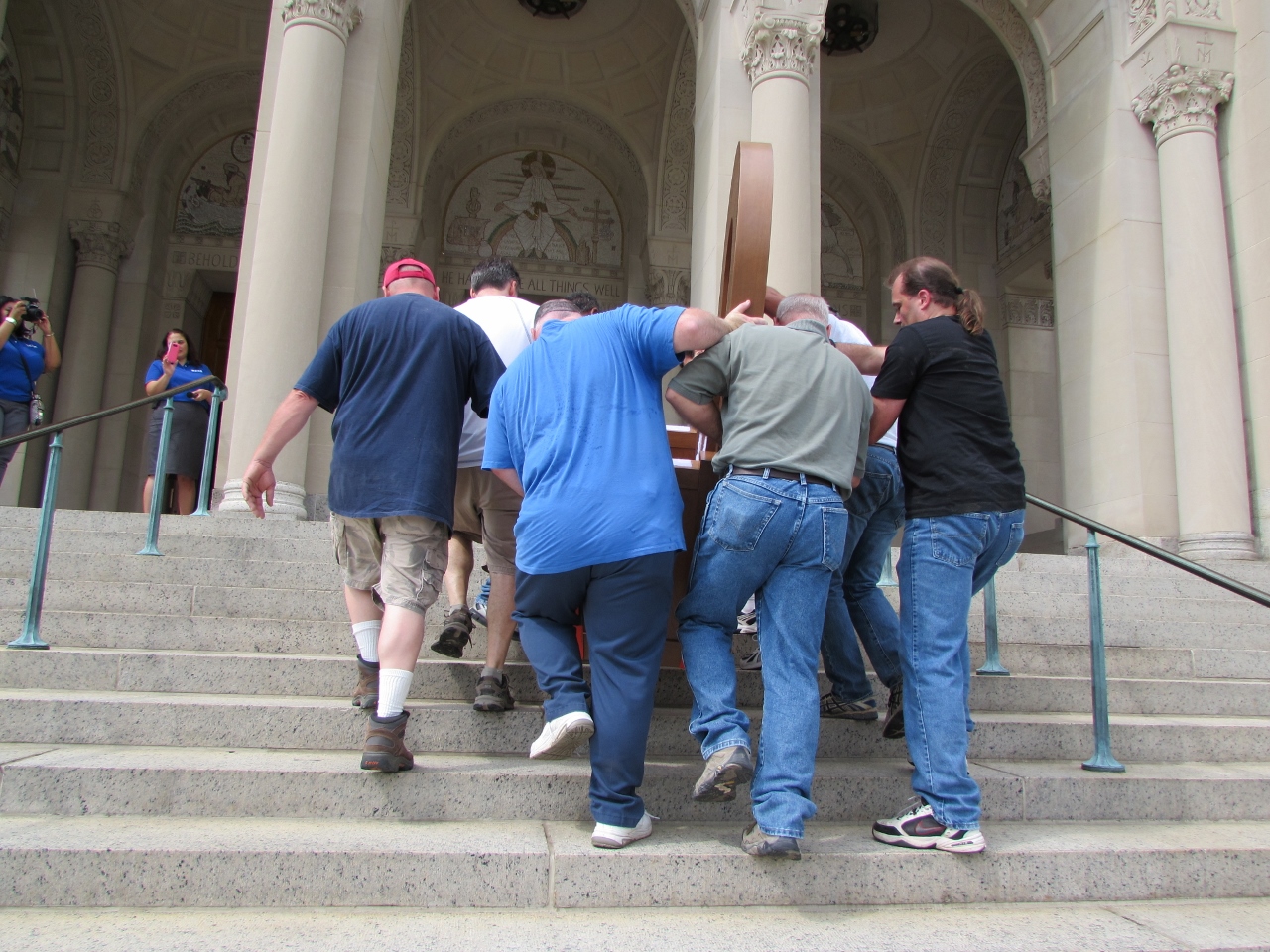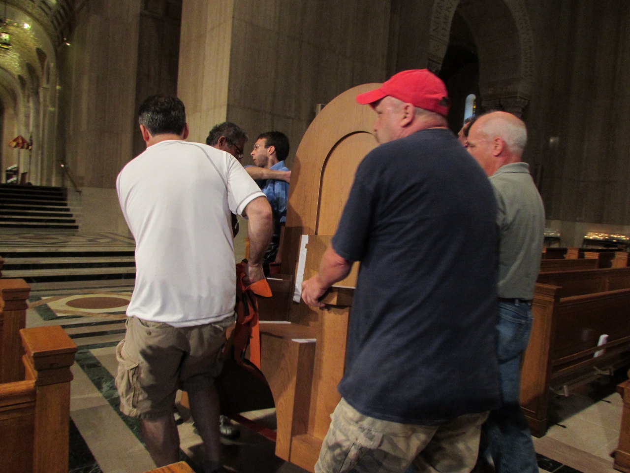 We had several steps outside and a few more inside as well. The papal chair was heavy, we used eight people to carry it up. Four could have done it, but we didn’t want to take any chances at this point.