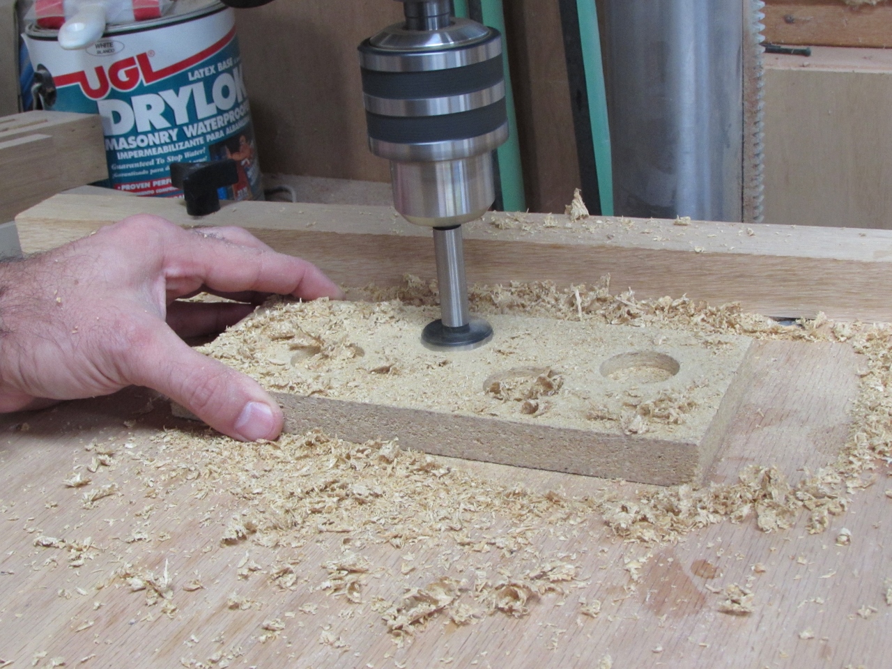 I also drilled several pockets, with the same bit, in a scrap piece of wood.