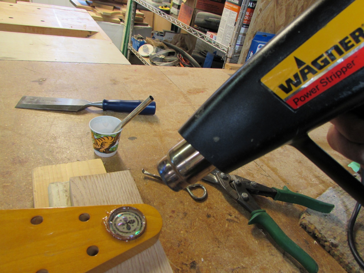 The epoxy will typically have air bubbles that form when mixing. To remove them, I used a heat gun. This thins the epoxy, allowing the bubbles to escape. you can also mist the surface with acetone, but I don’t like using that stuff if I don’t have to.